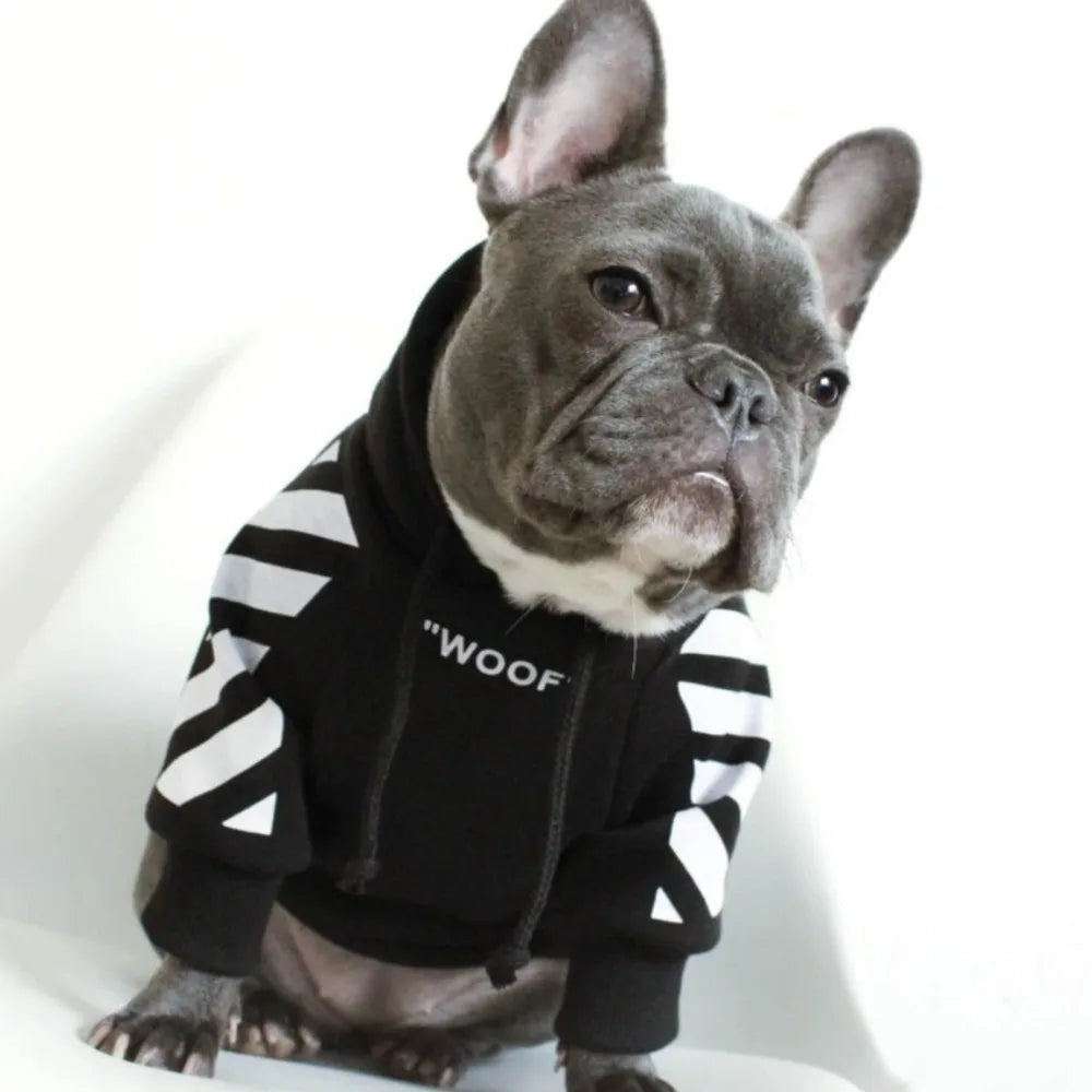 Pet Dog Clothes Winter Warm for French Bulldog Woof Stripe Pattern Dogs Hoodie Clothes Plus Velvet Jacket for Large Medium Dogs