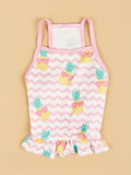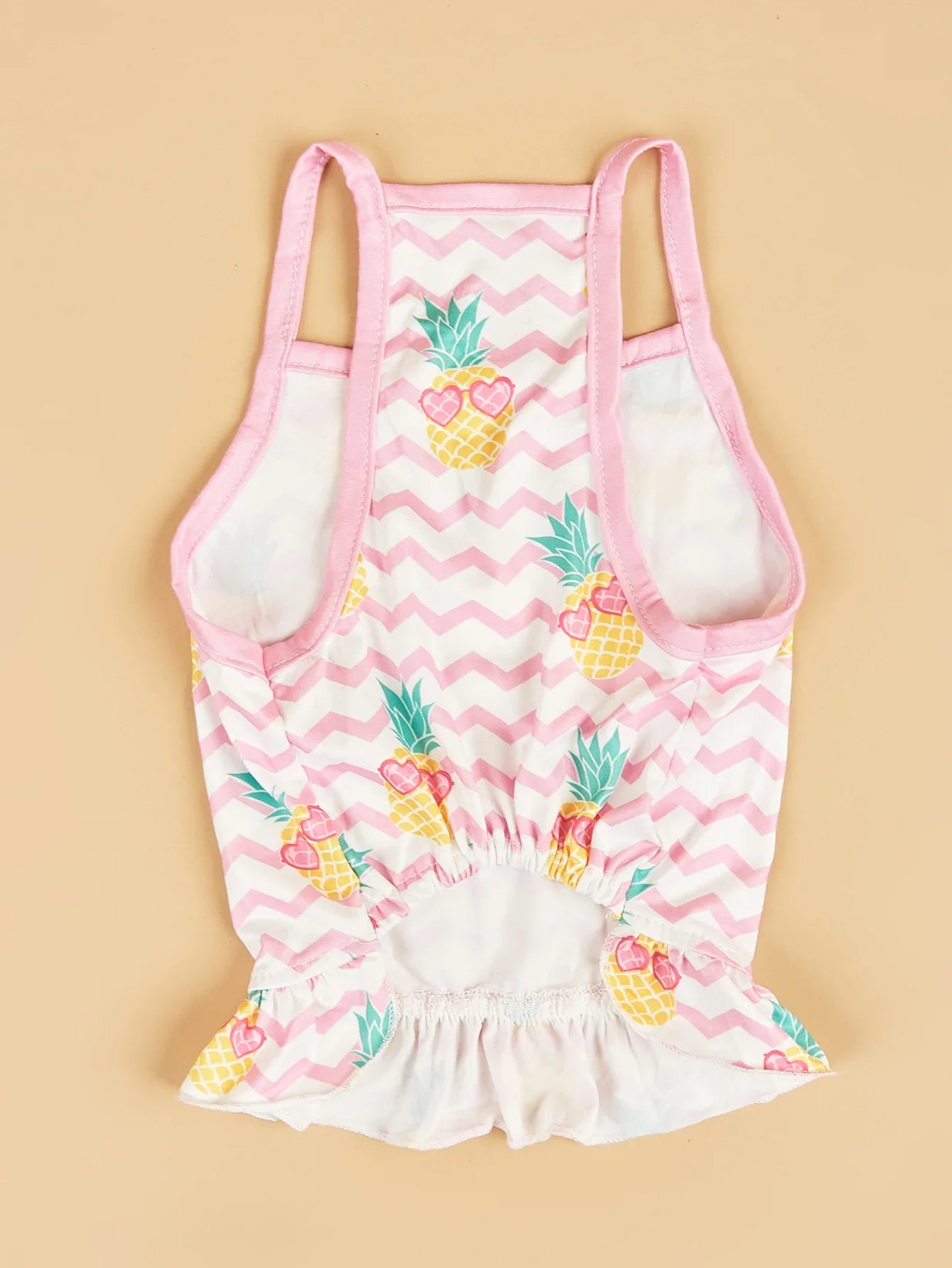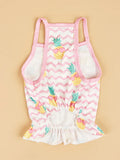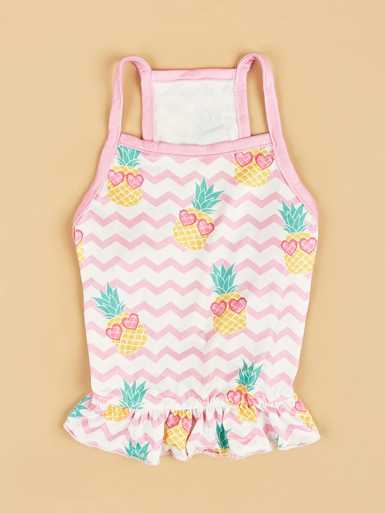 Pet Dress with Pineapple Print & Pink Zigzag Pattern, Ruffled Doggie Outfit, Cute Puppy Clothes, Fashion Small Dog Apparel