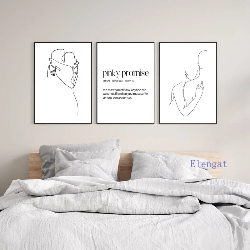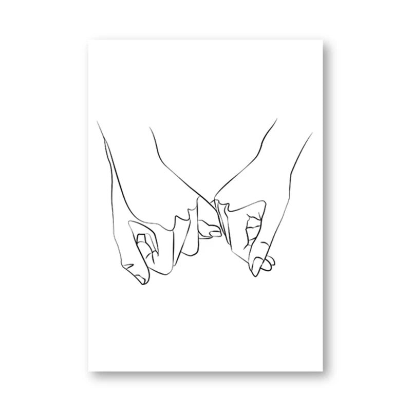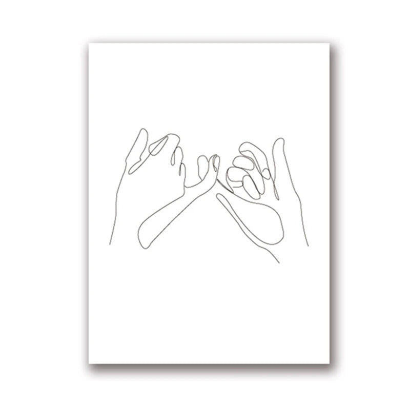 Pinky Swear One Line Drawing Art Print Minimalist Couple Love Decor Modern Wall Art Canvas Painting Poster Bedroom Home Decor