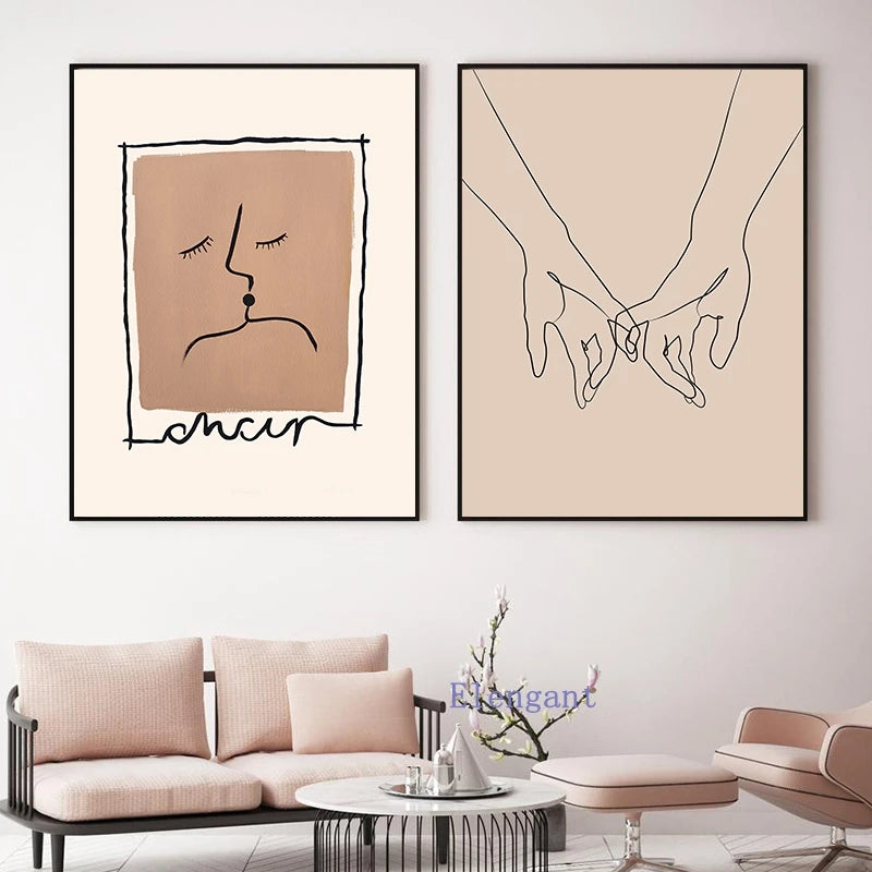 Purpose: Couple Single Line Drawing Art Painting Picture Home Decoration
