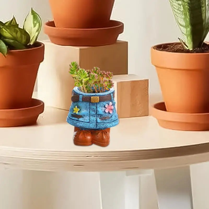 Plant Pots Indoor Unique Jeans Denim Skirt Resin Flower Pots Resin Crafts Pastoral Style Outdoor And Indoor Garden Planter For