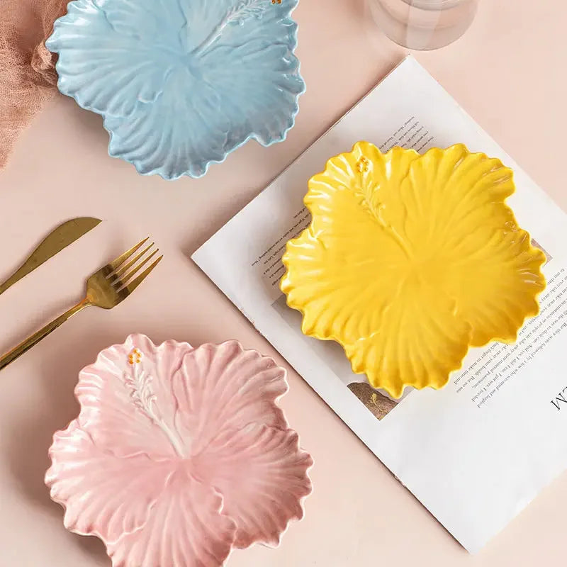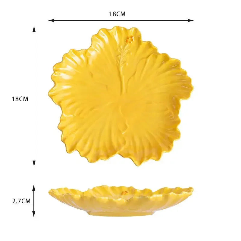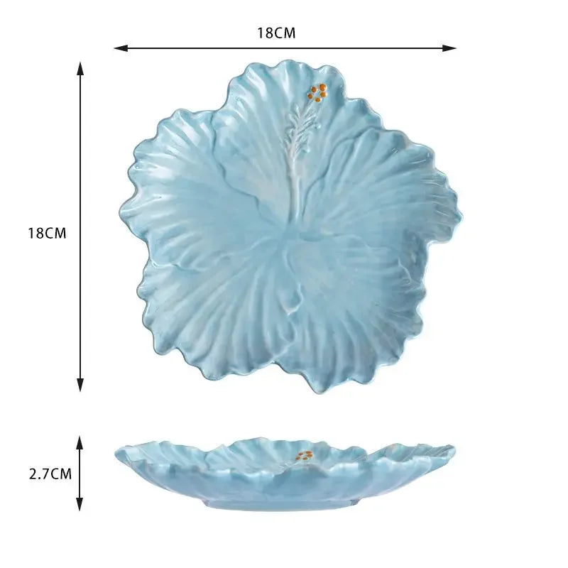 Plates Japanese  Originality Hibiscus Flower Plant Ceramics Household Modelling Instant Noodles Salad Fruit Container