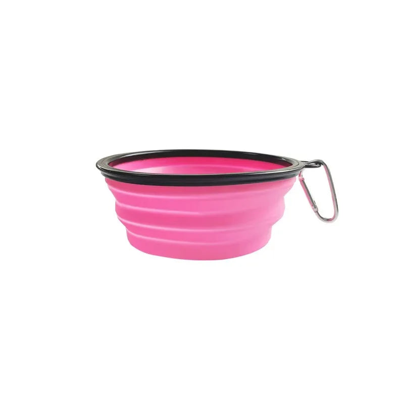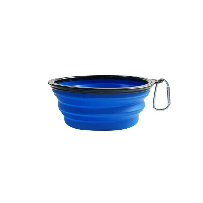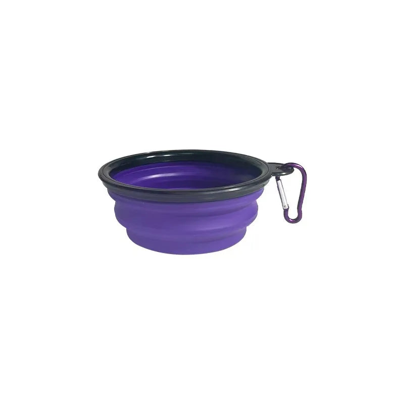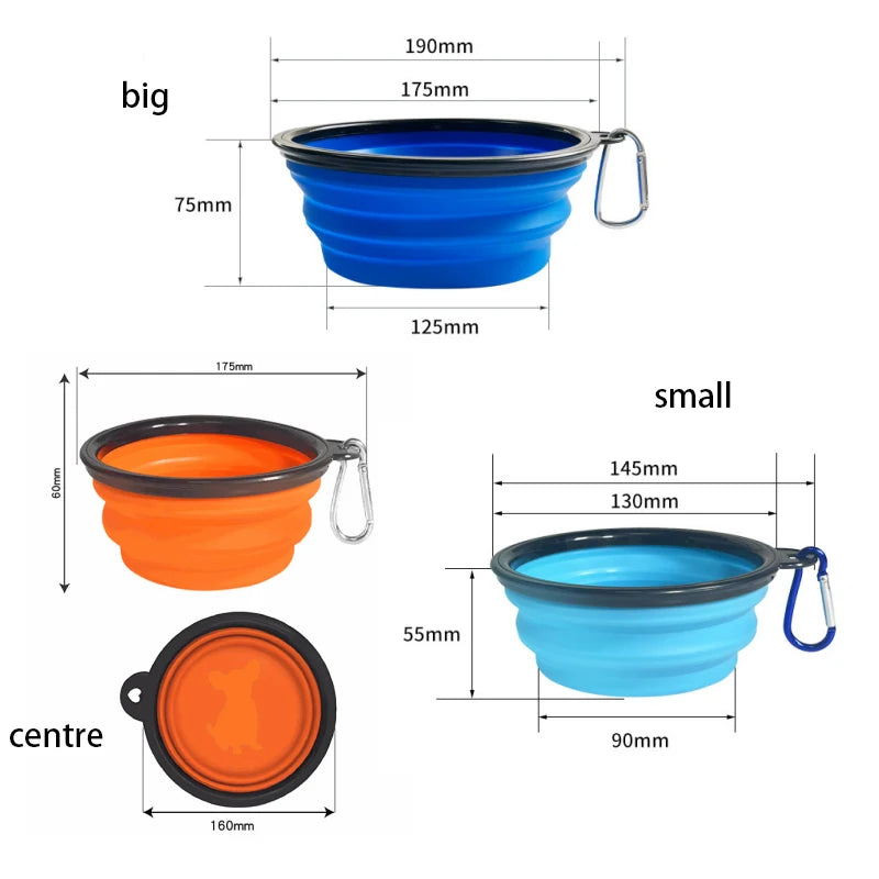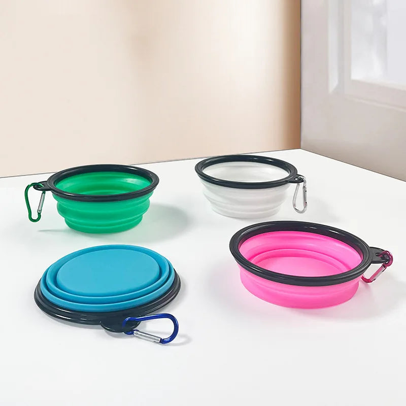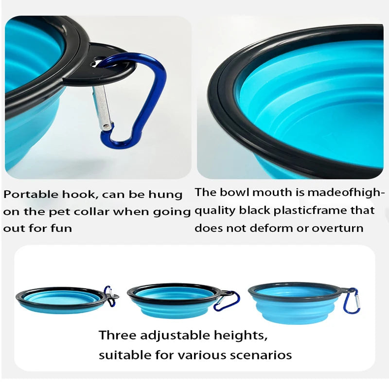 Portable Foldable Silicone Dog Food Bowl 2-in-1 Dog and Cat Pet Water Dispenser Outdoor Travel with Mountaineering Buckle Bottle