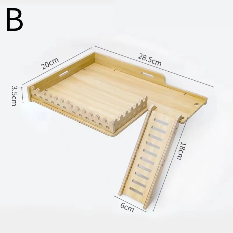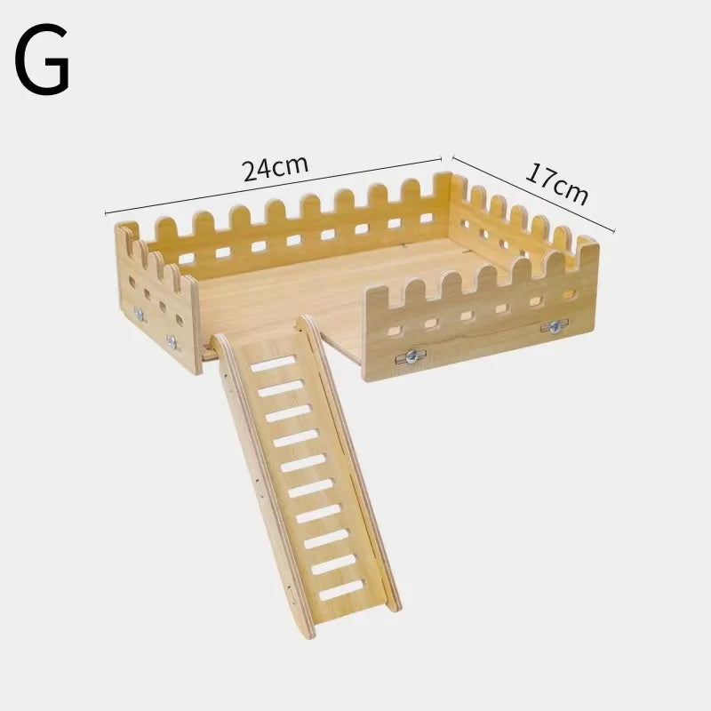 Practical Hamster Toy Thickened Entertainment Smooth Hamster Double Layer Wooden Climbing Platform with Ladder