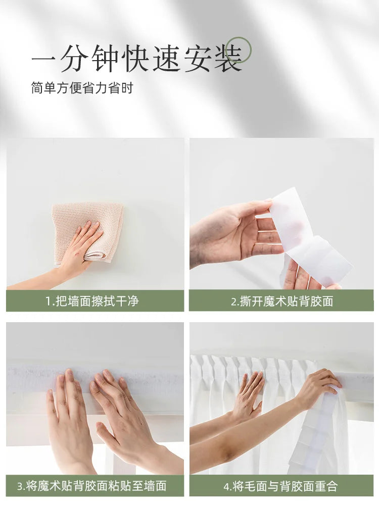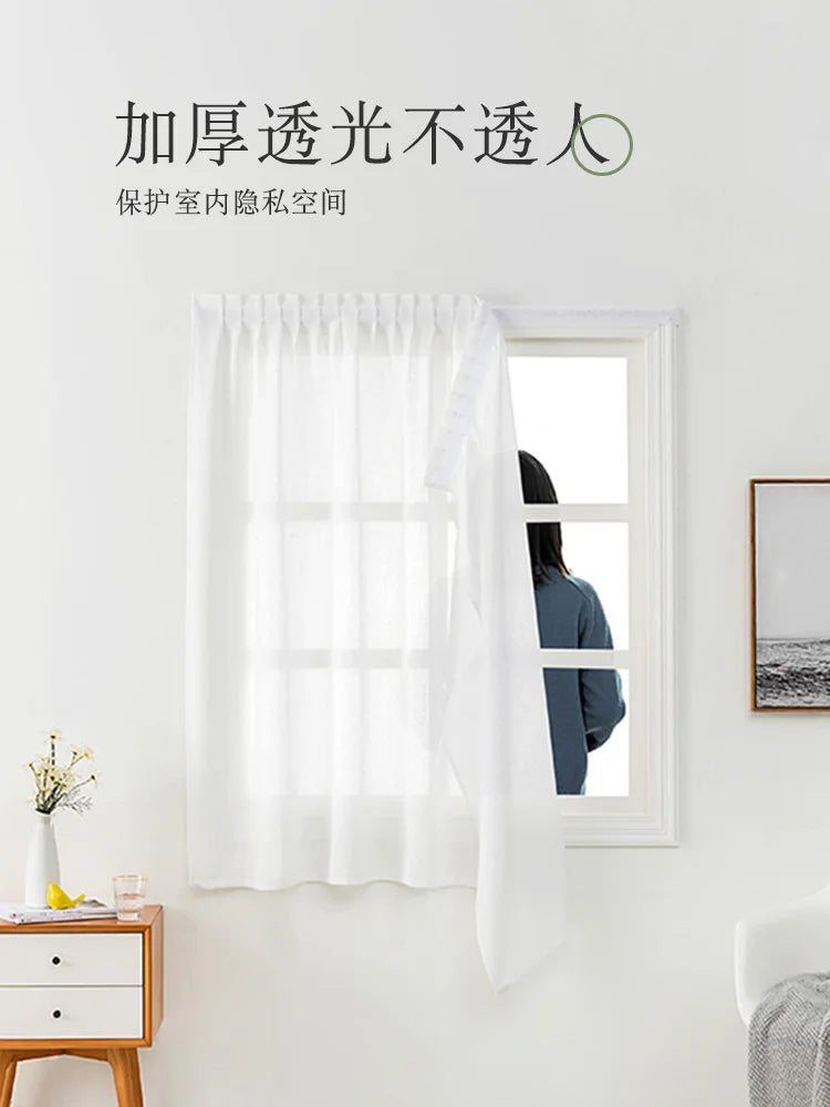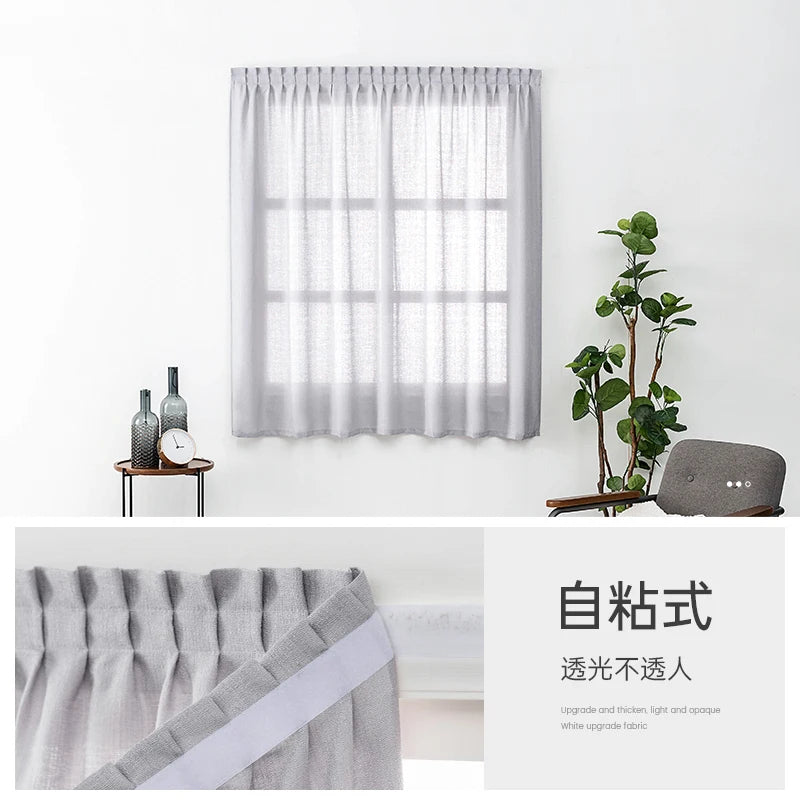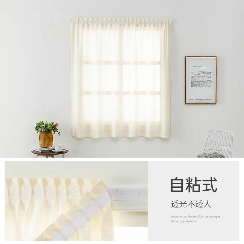 Punch-Free Semi Sheer Short Curtain Self-Adhesive Weave Textured Privacy Translucent Drapes for Door Kitchen Cabinet Soft Fbaric