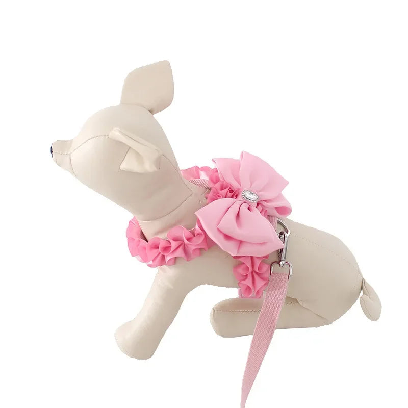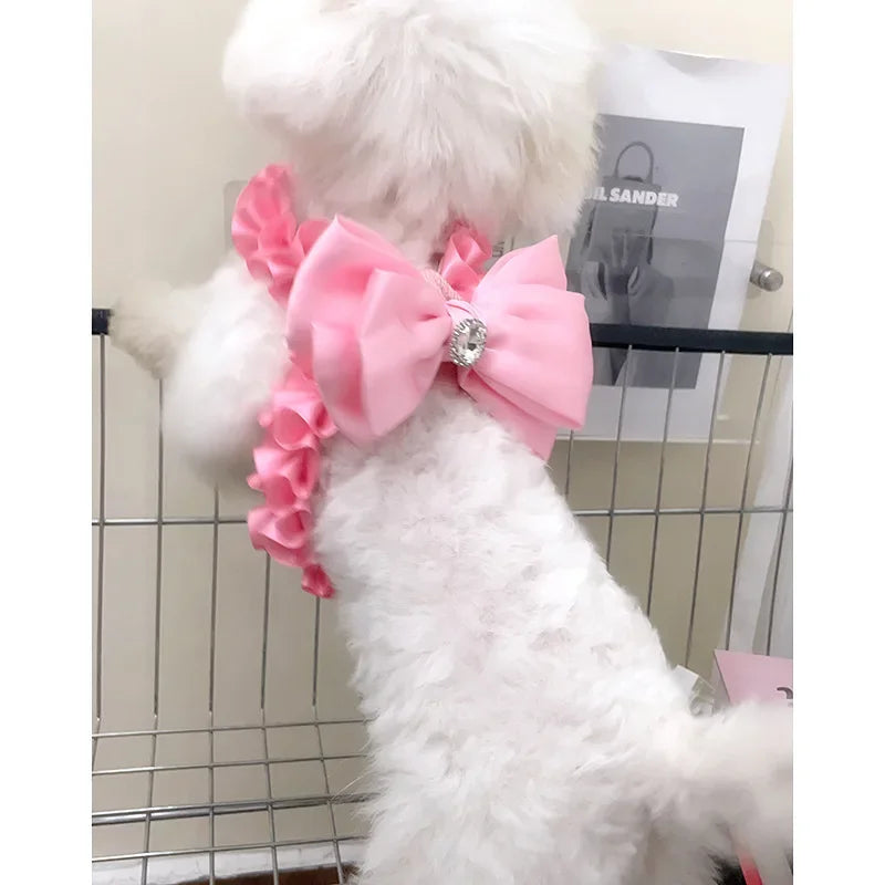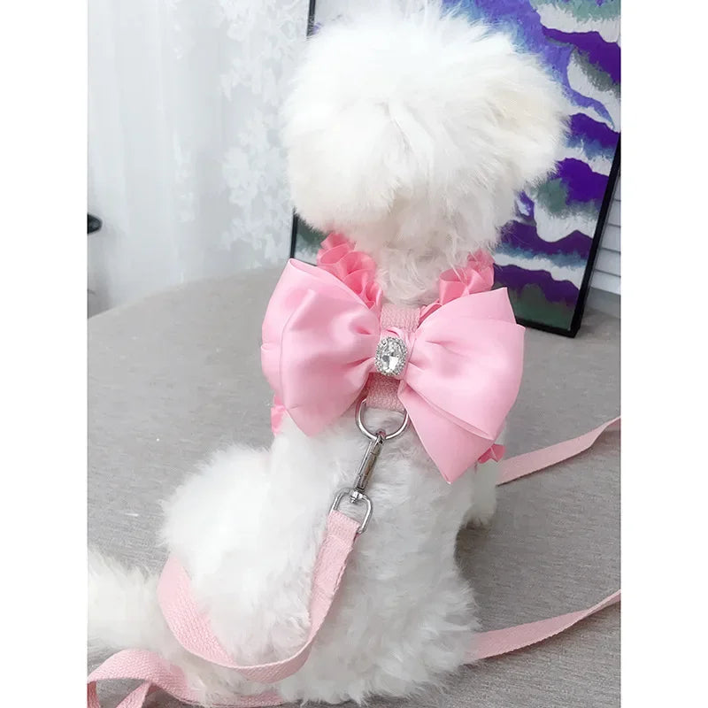 Puppy Dog's Harness Traction Rope Cute Korean Pink Bow Harness Rope Set for Small Medium Dog Yorkshire Outerdoor Leashes Harness
