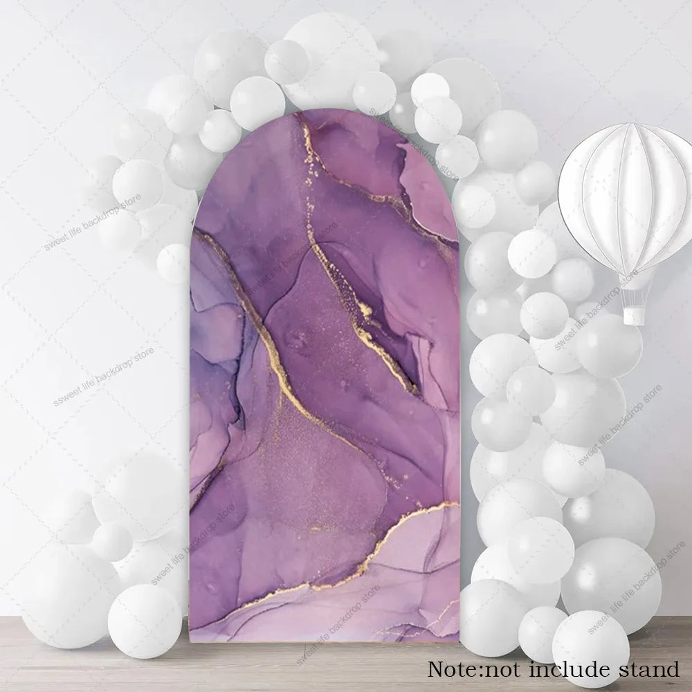 Purple Marble Gold Arch Backdrop Cover Photography Custom Wedding Birthday Party Background