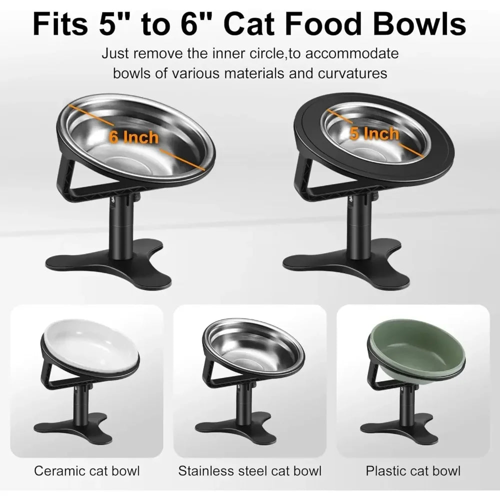 Raised Cat Bowls,Elevated for Indoor Cats with Height-Adjustable Stand Non-Slip Stainless Steel Bowl 15° Tilted Kitten Food Bowl