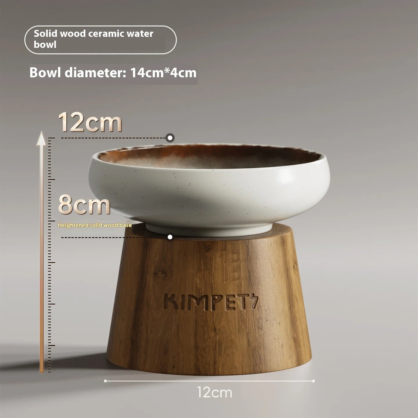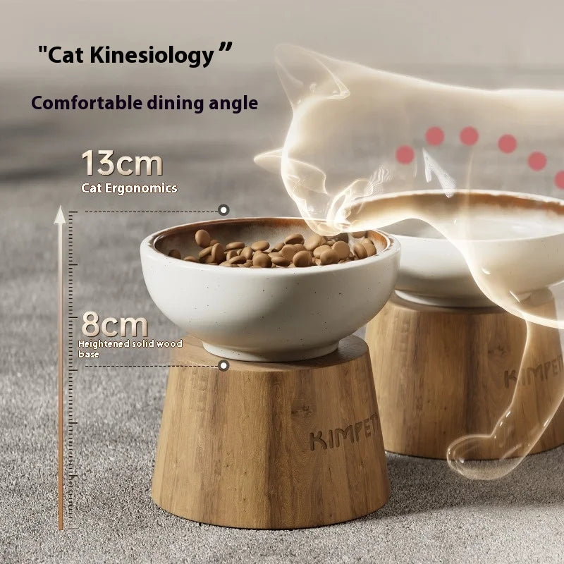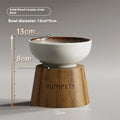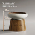 Raised Ceramic Cat Bowl Pet Food Water Dish With Wood Stand Anti Spill Non Slip High Base Feeding Bowl Protect Neck Dogs Cats