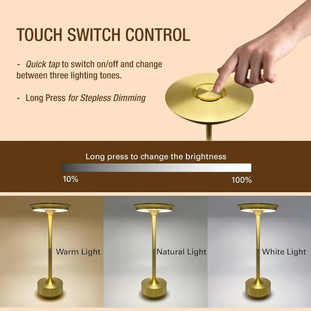 Rechargeable LED Table Lamps with Portable Battery Operation, Stepless Dimming and Memory Function for Outdoor and Indoor Use