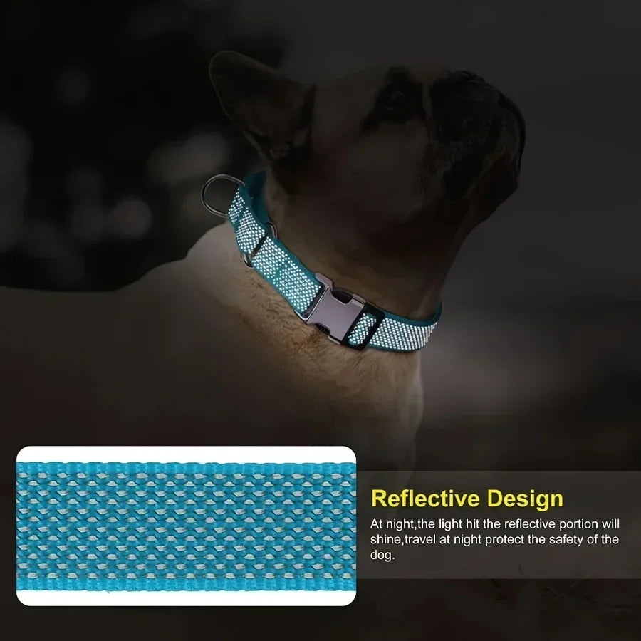 Reflective Nylon Dog Collar Adjustable Pet Training Controlled Collar Durable Safe Choke Necklace for Small Medium Large Dogs