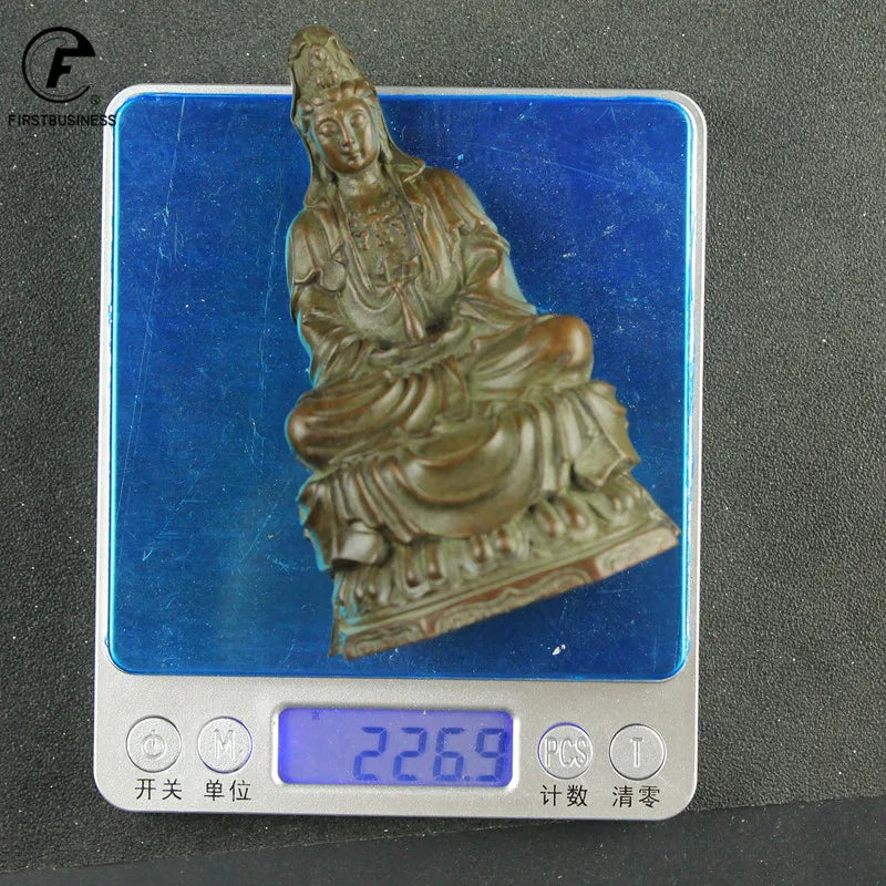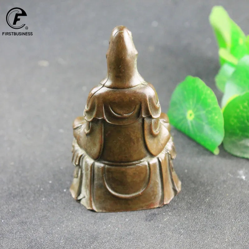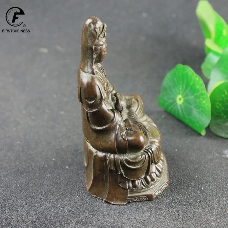 Retro Copper Guanyin Buddha Statue Home Decoration Brass Sculpture Retro Living Room Office Desk Ornament Miniatures Figurines