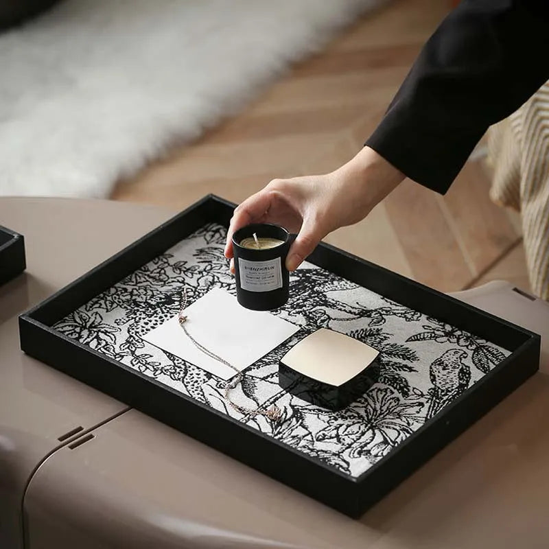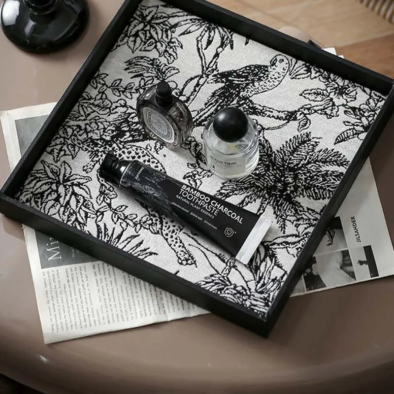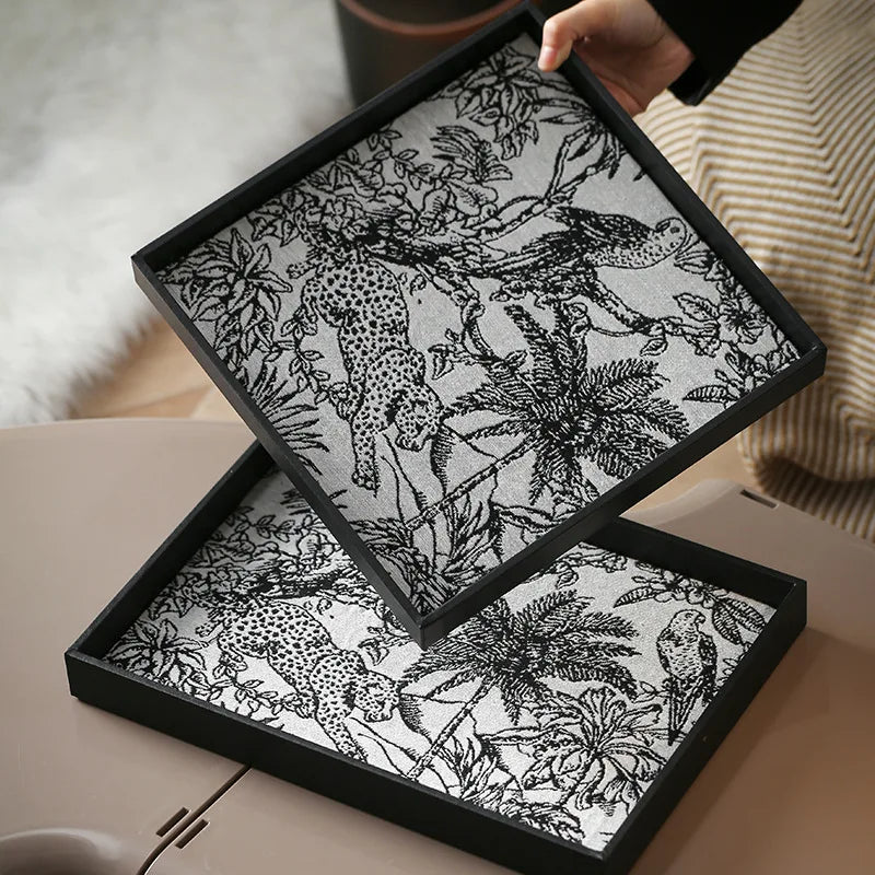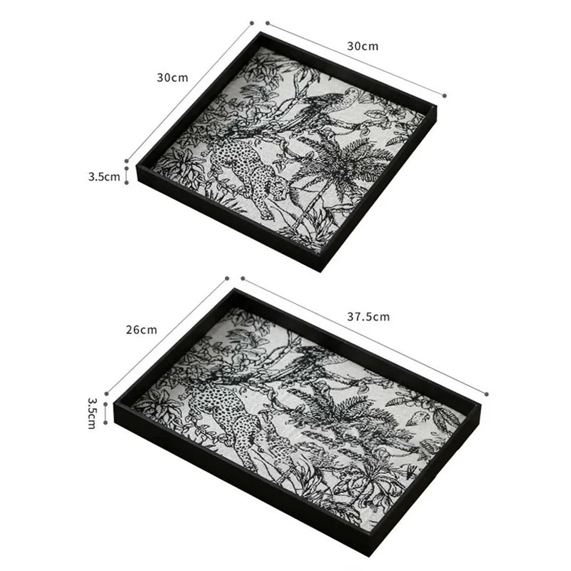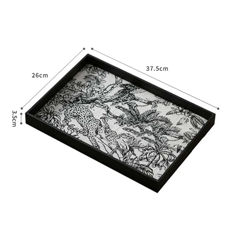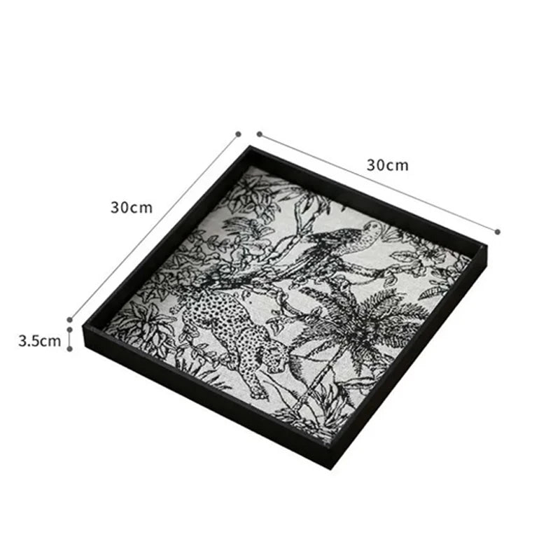 Retro Decorative Tray Home Decoration Leather Storage Tray Jewelry Display Tray Porch Key Storage Plate Animal and Plant Pattern