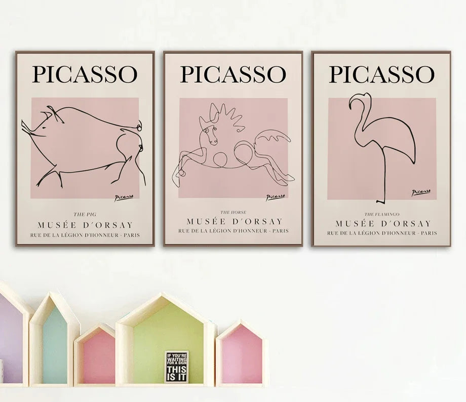 Retro Simple Picasso Abstract Art Animal Line Simple Drawing Poster Canvas Painting Prints Pictures Room Home Wall Decor Gift