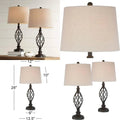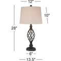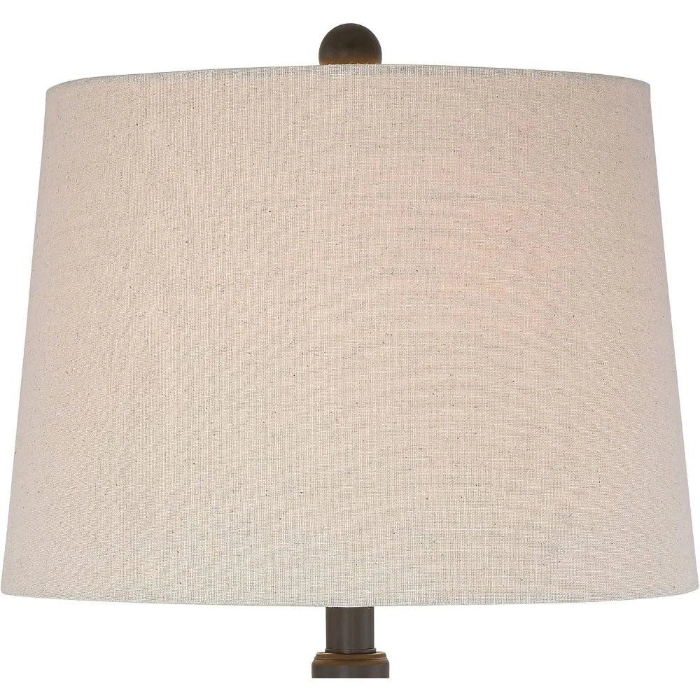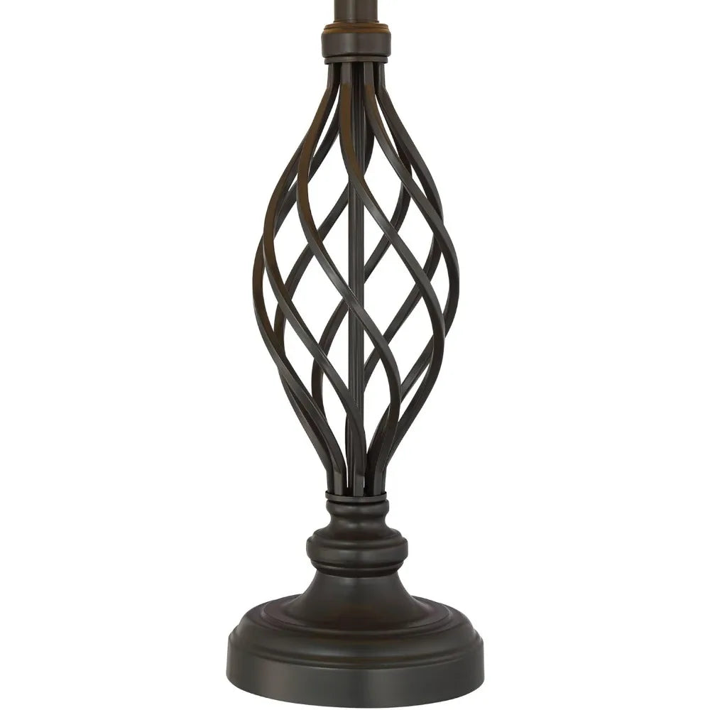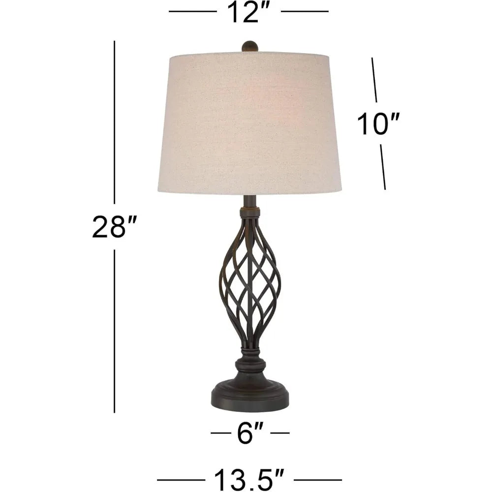 Rustic Farmhouse Table Lamps Set of 2, 28 Tall, Bronze Iron Scroll Design, Cream Tapered Shade, Traditional Style