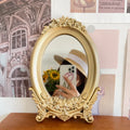 Rustic French Palace Style Carving Frame Table Mirror Gold Decorative Tray Home Decorative Mirror Bedroom Table Makeup Mirror