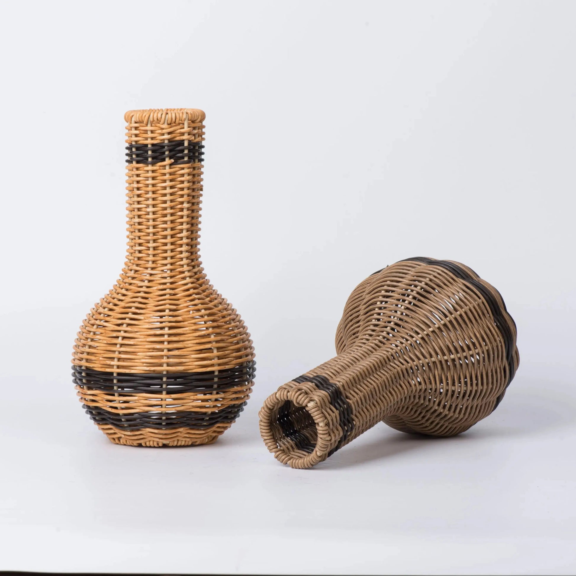 Rustic Handwoven Vase - Willow Rattan Craft for Living Room Tabletop, Decorative Flower Vase for Dried Flowers, Home Art Ornamen