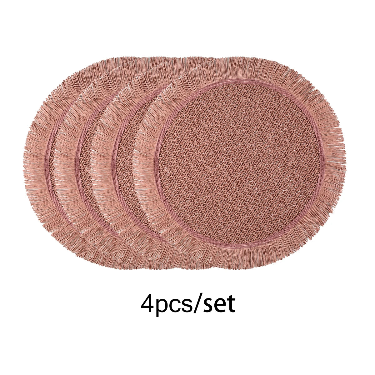 Set of 4 Table Round Woven Paper Placemat for Dining Table Paper Bohemian Woven Placemat