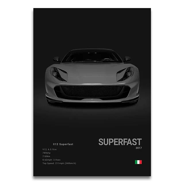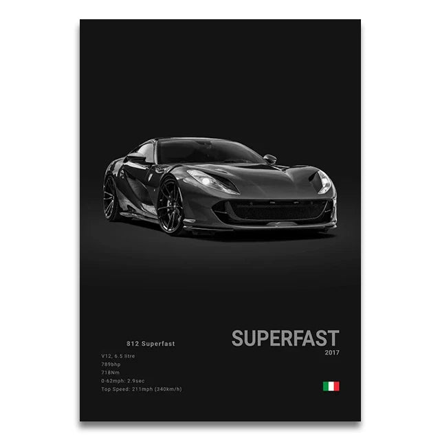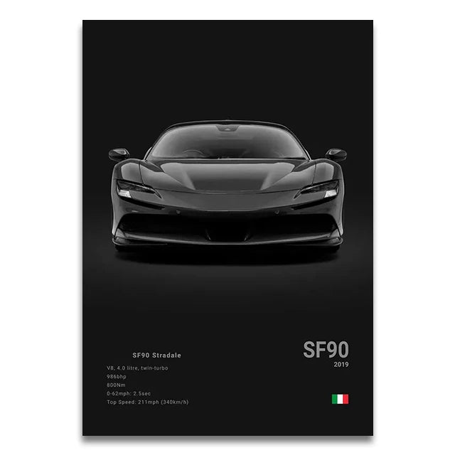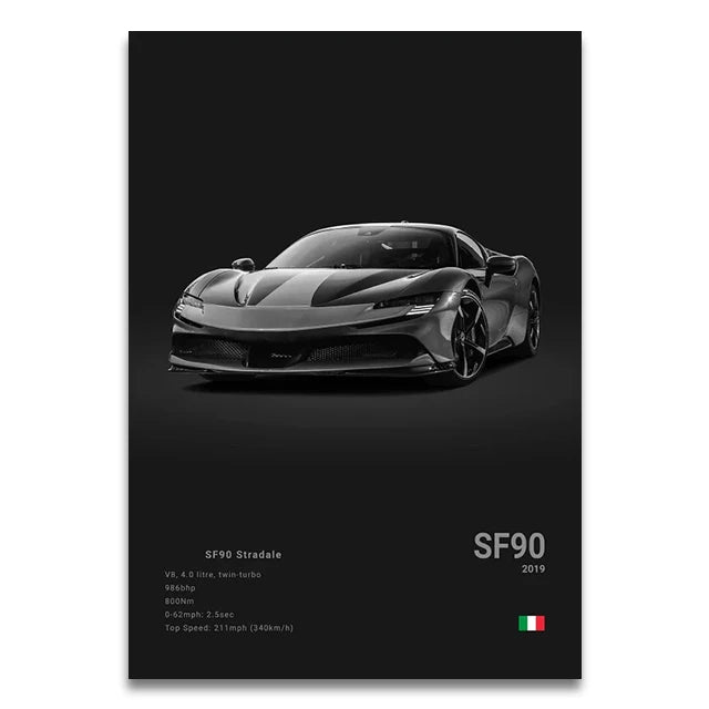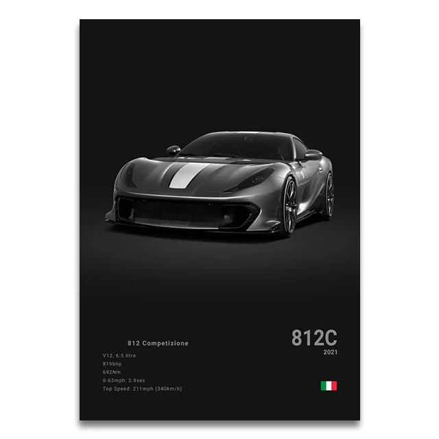 SF90 812C Canvas Wall Art Print Poster F50 F40 F80 Sports Car Decoration Painting Modern Home Decoration Painting Car Lover Gift