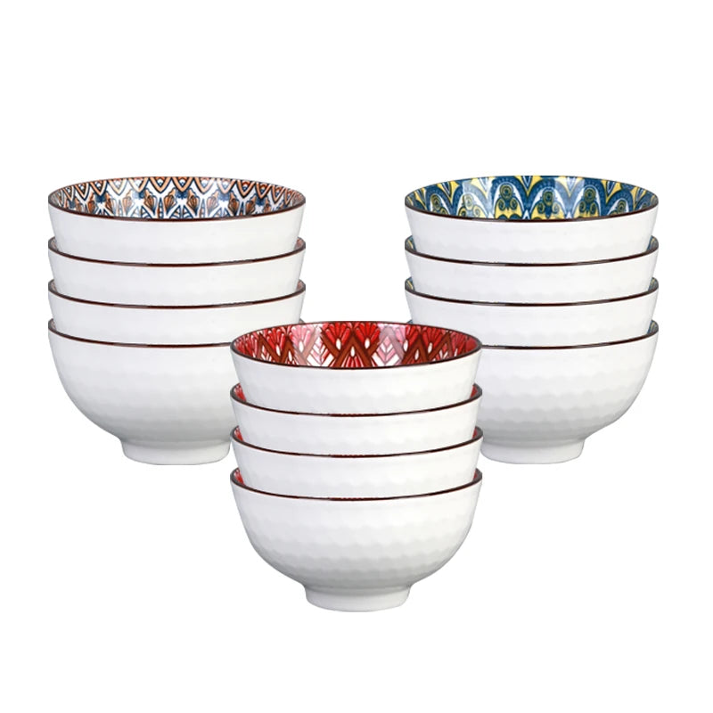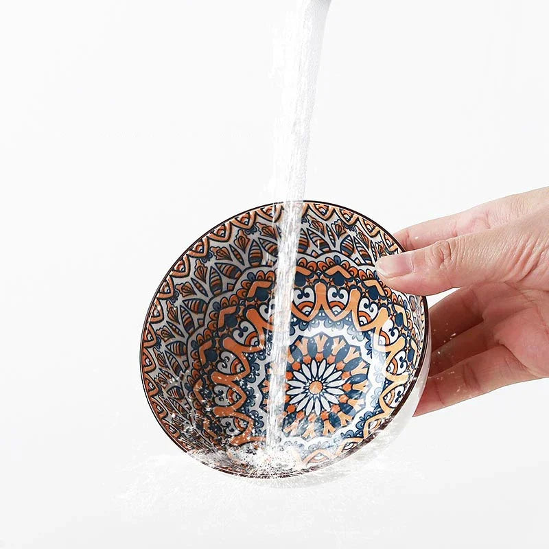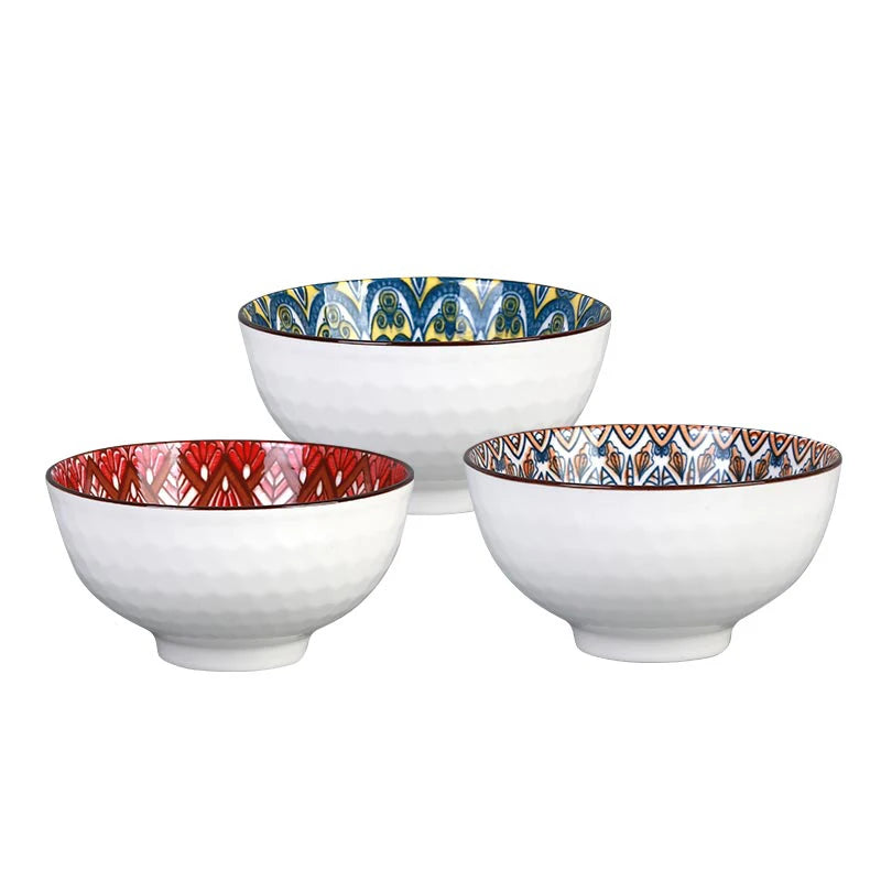 SHUNXIANG 4.5inch Ceramic Bowls Set Bohemian Floral Soup Bowls Underglaze Colour Rice Bowl Heat-resistant Porcelain Bowl Set