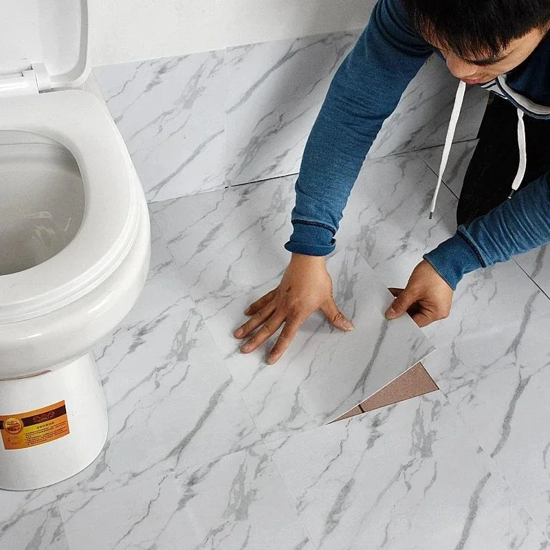 Simulated Thick Marble Tile Floor Sticker PVC Waterproof Self-adhesive Living room Toilet Kitchen Home Floor Decor Wall sticker