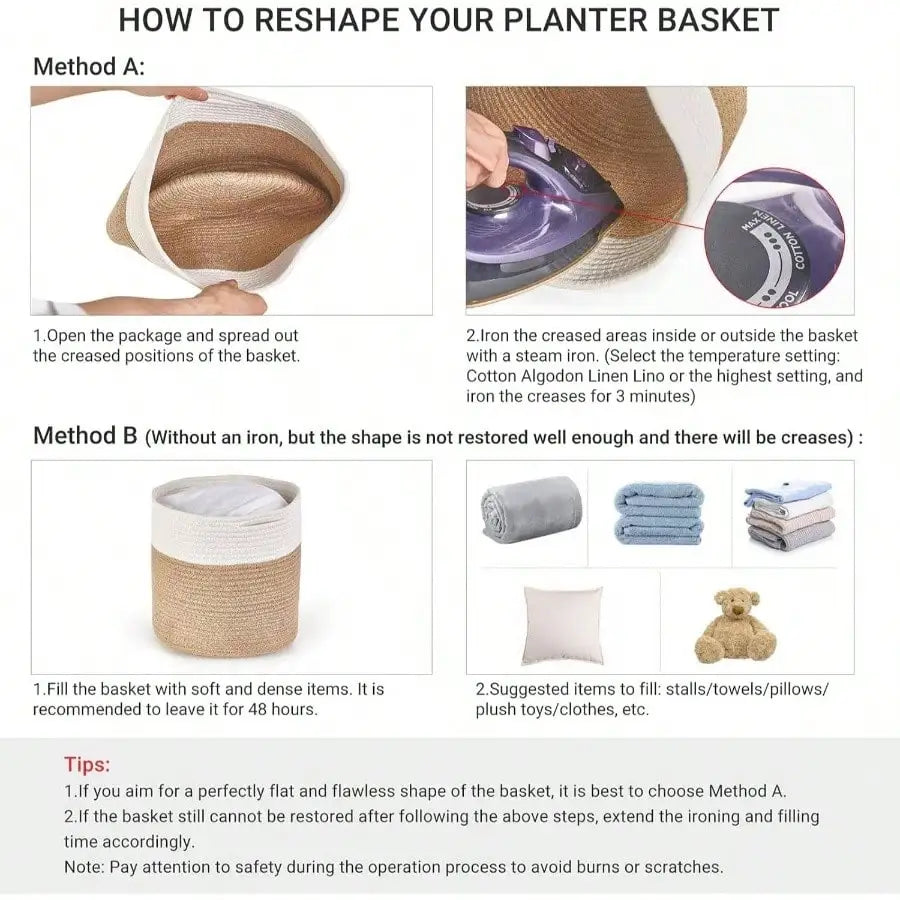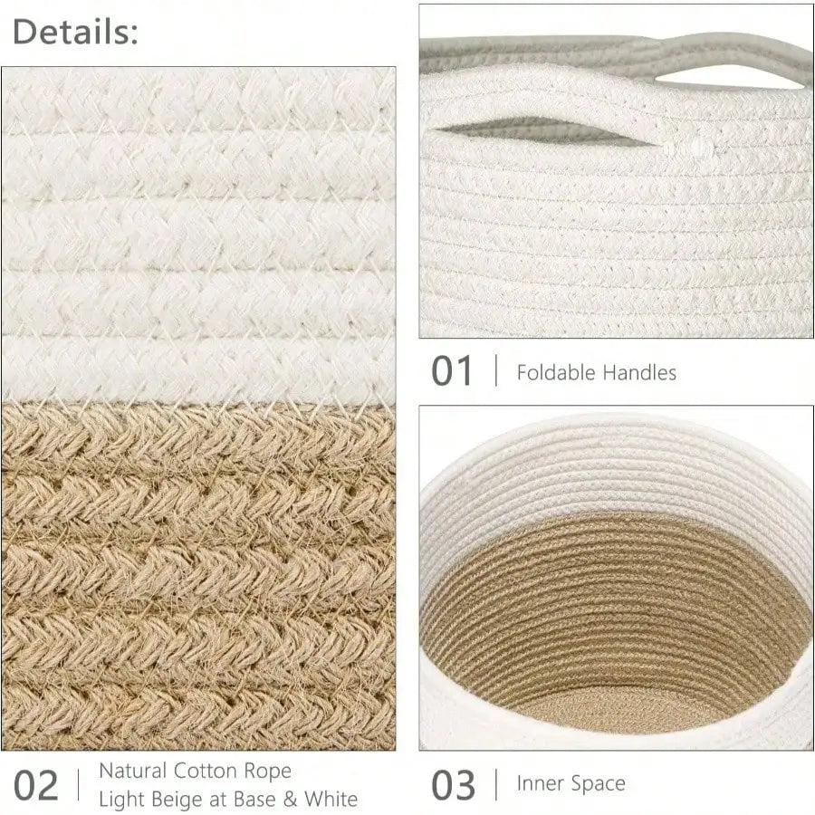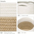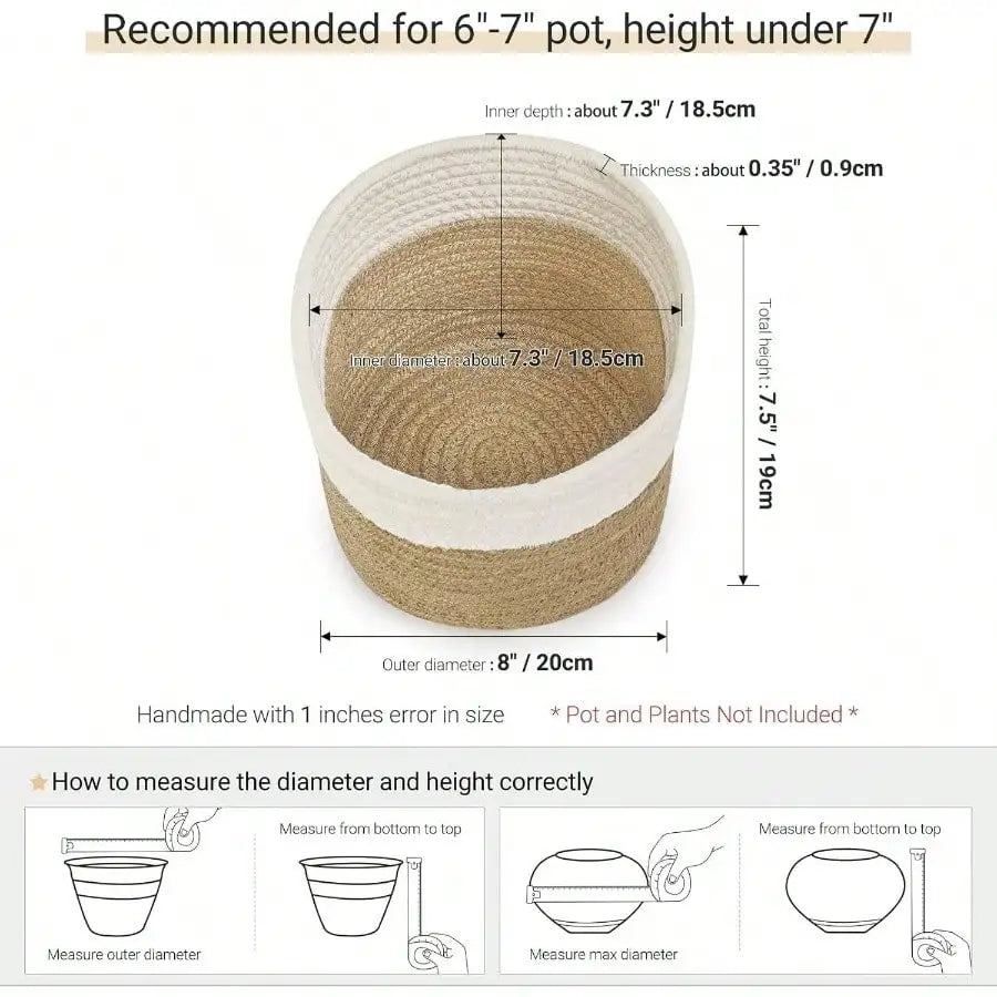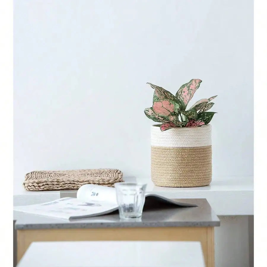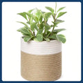 Small Cotton Rope Plant Basket Woven Plant Coil Basket for Flower Pots, Desktop Storage Box Home Decor, White and Beige
