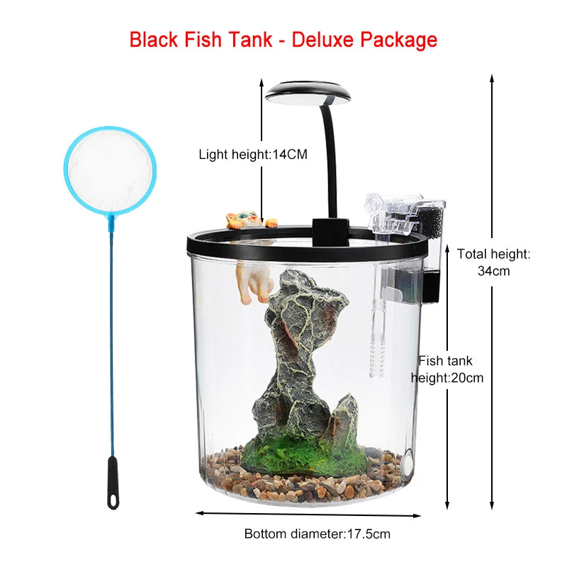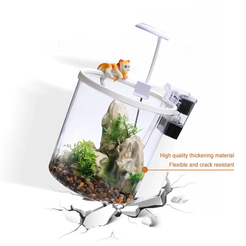 Small Round Fish Tank with Oxygenated Flowing Water Eco-Cycle Goldfish Bowl for Office And Home Desktop Living Room Aquarium