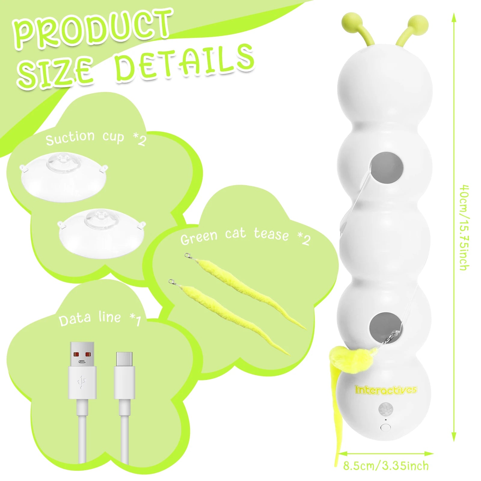 Smart Caterpillars Toy Rechargeable Motion Activated Interactive Cat Toy with Suction Cup Wall and Window Mounted for Pet