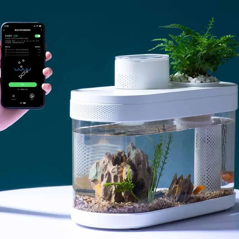 Smart Fish Tank For Xiaomi Mijia MiHome App Amphibious Eco Aquarium Pro WiFi Box C180 Auto Feeder RGB Lighting Works Fishtank