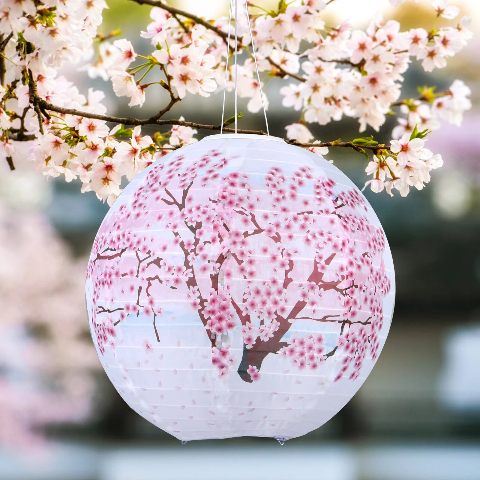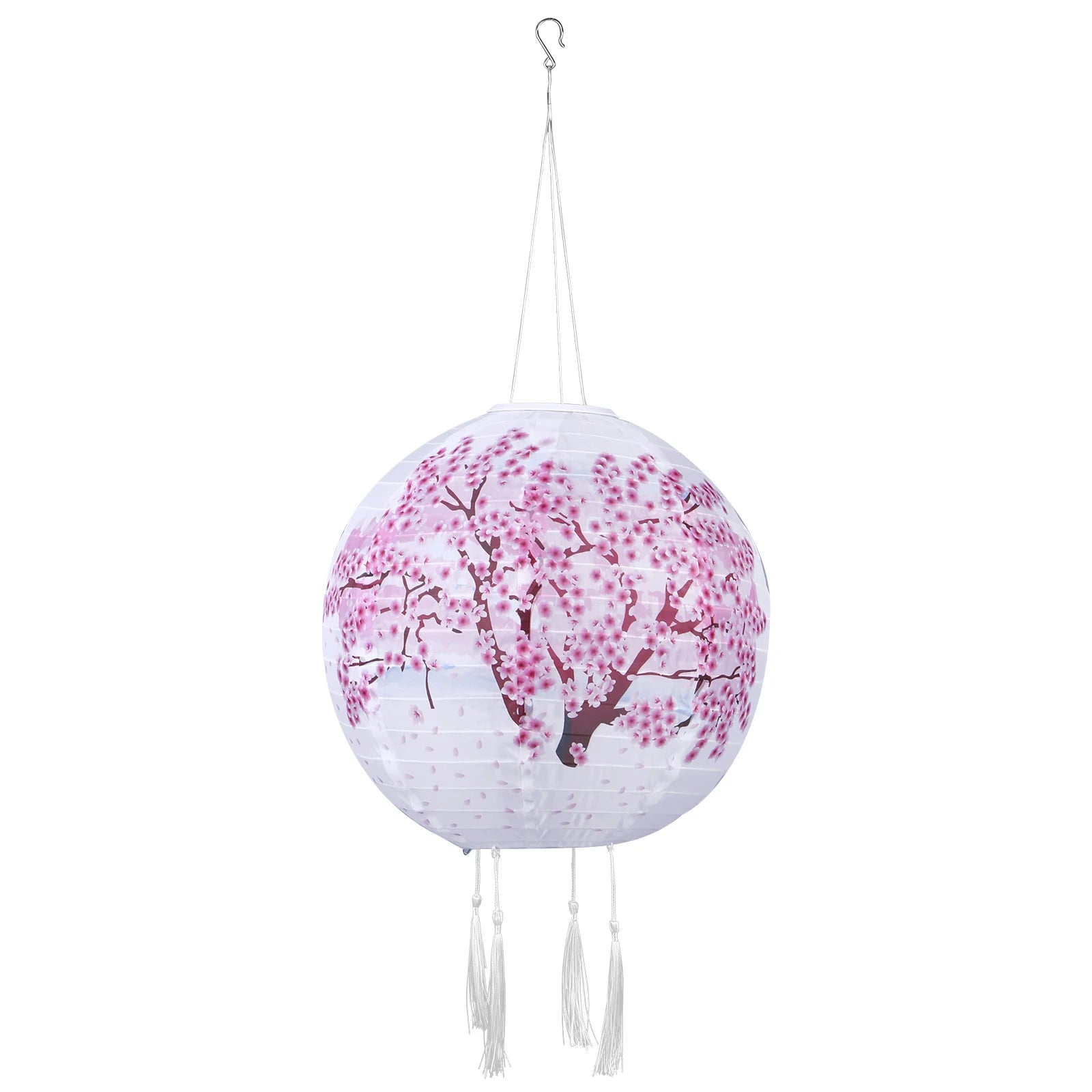 Solar Powered Cherry Blossom Lights Nylon Colth Chinese Traditional Hanging Lanterns IP65 Waterproof for Patio Garden Decor