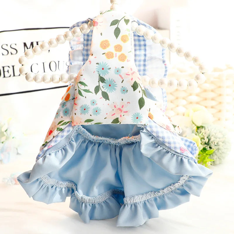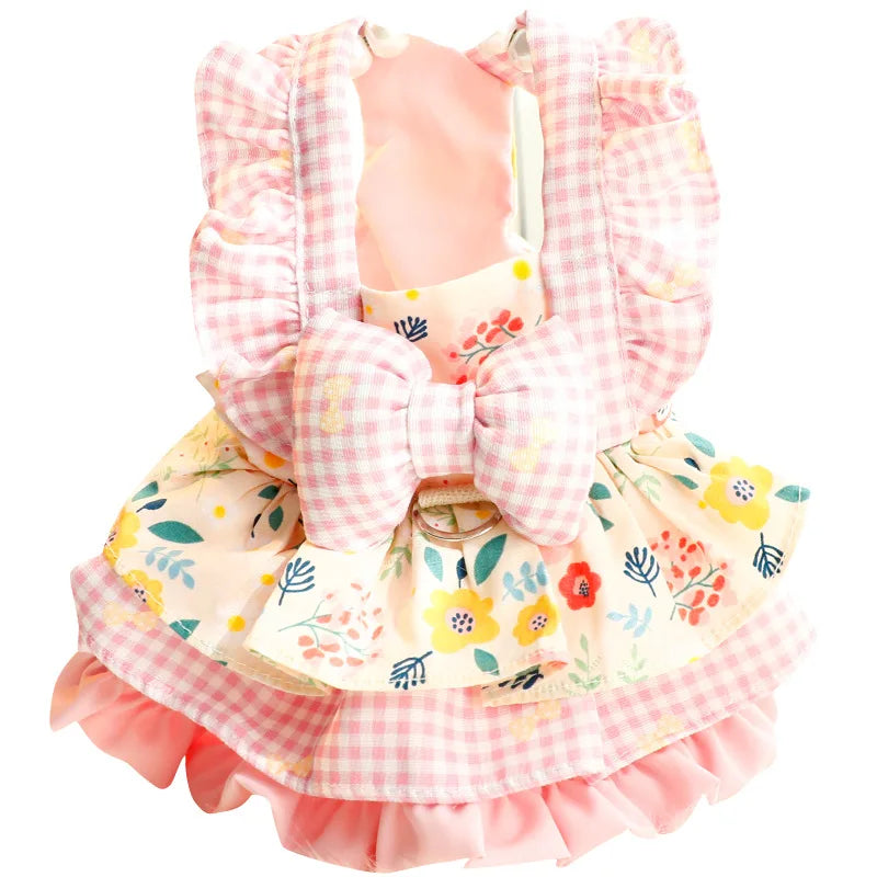 Spring/Summer Thin Dog Clothes, Floral Cat Princess Dresses with Leashes, Lolita Style Outfits for Small DogsTeddy