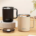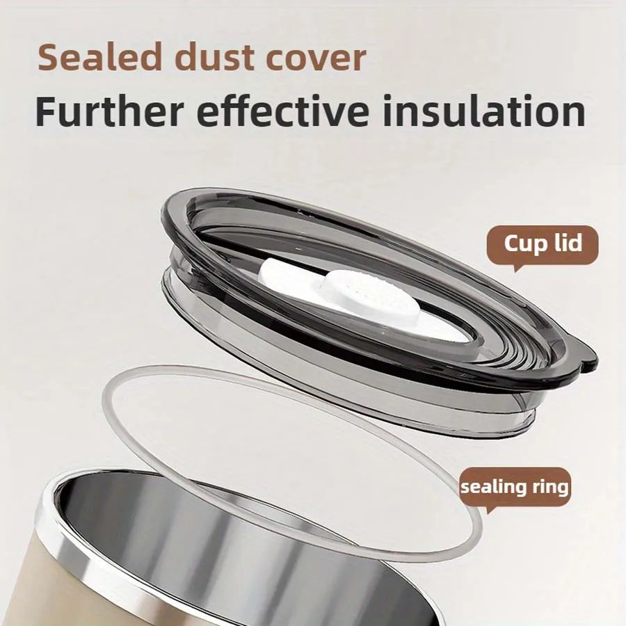 Stainless steel mug with lid, large-capacity office cup, brewed drinking cup, household coffee cup for men and women.