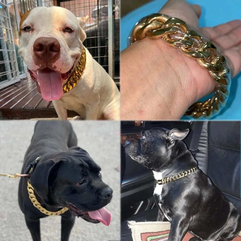 Strong Metal Dog Chain Collars Stainless Steel Pet Training Choke Collar For Large Dogs Pitbull Bulldog Silver Gold Show Collar