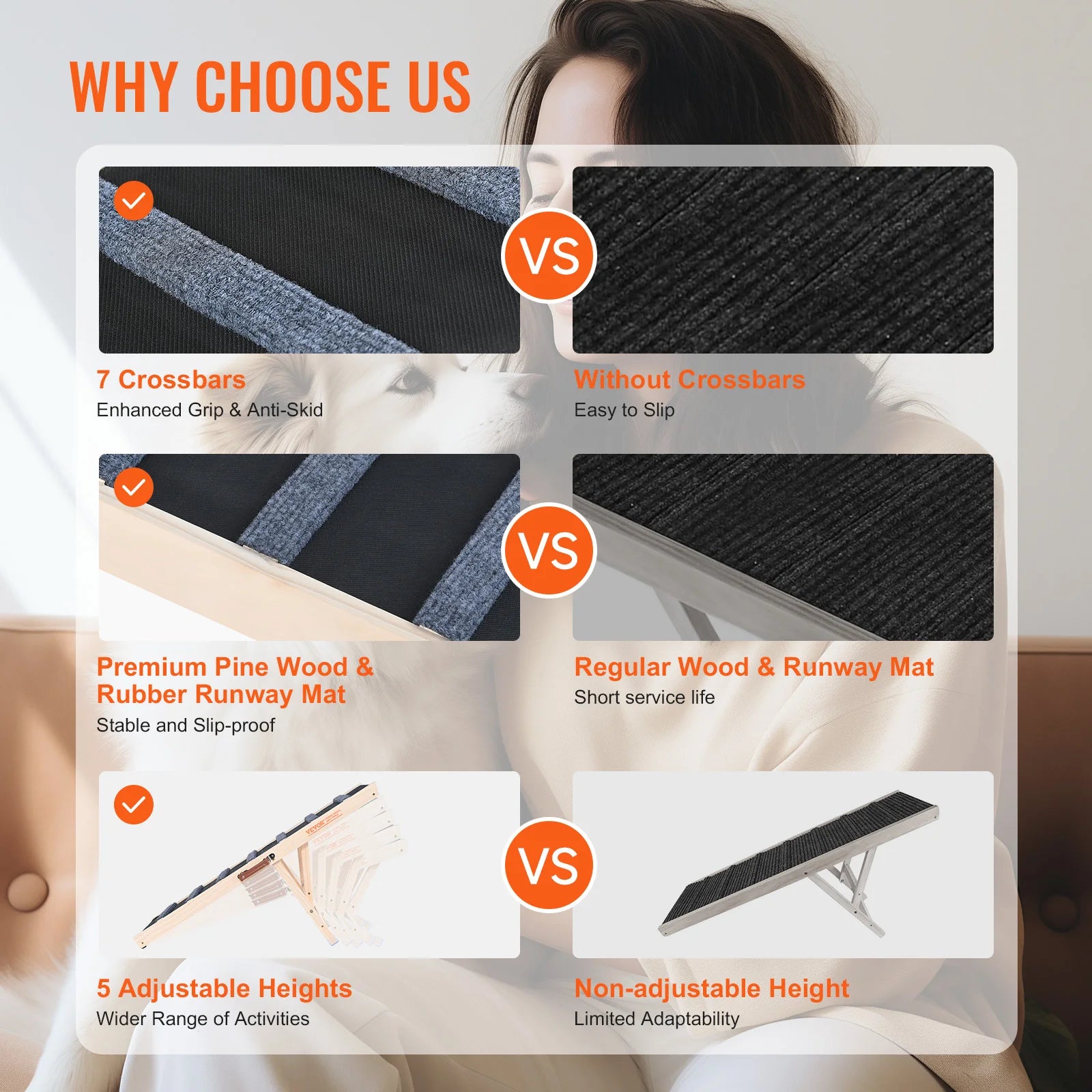 SucceBuy Dog Ramp Folding Ladder Anti-slip High Adjustable Wooden Pet Ramp Removable for Small Old Dog Climbing Stairs Sofa Car