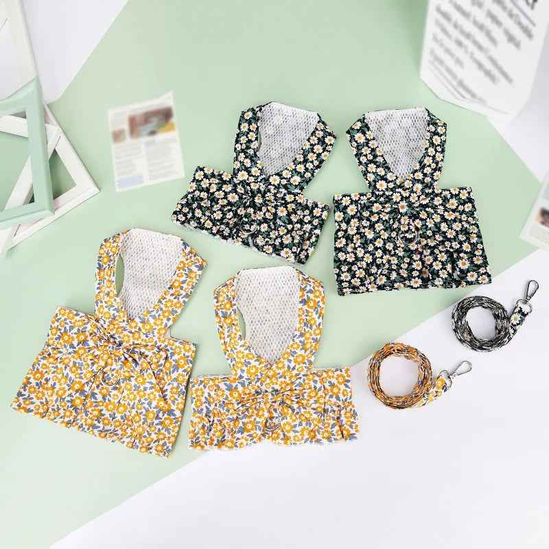 Summer Small Dog Dress Pet Harness with Breast Strap Traction Rope Cat Dogs Clothes Harness Vest Princess Tutu Dress Skirt