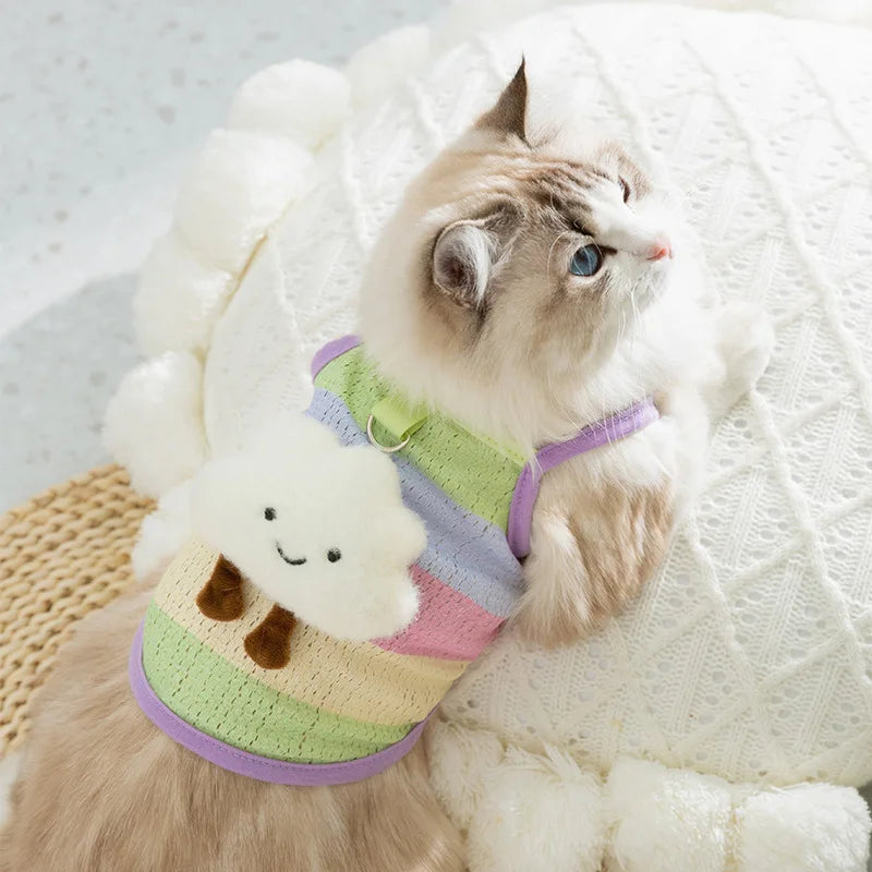 Suspenders Dog Vest Rainbow Striped Clouds Summer Dog Clothes Thin Cooling T Shirt Chihuahua Bichon Puppy Clothing Cat Vests