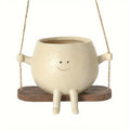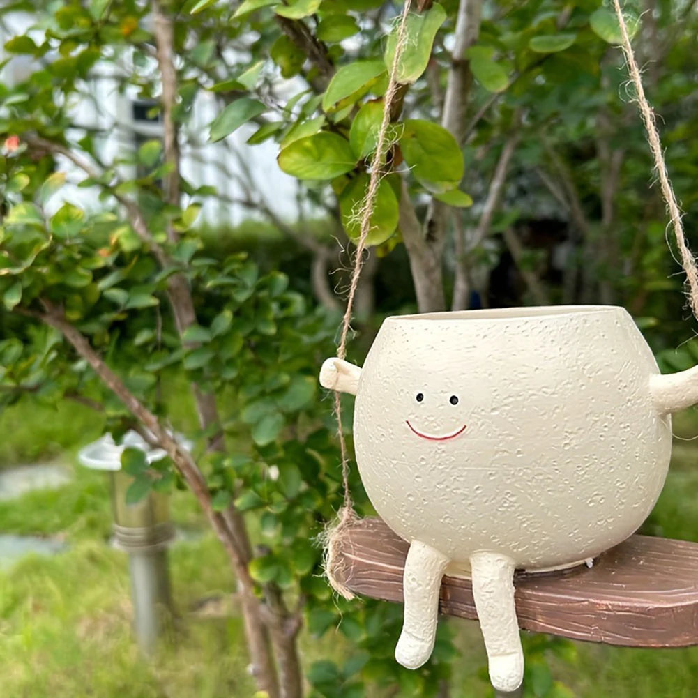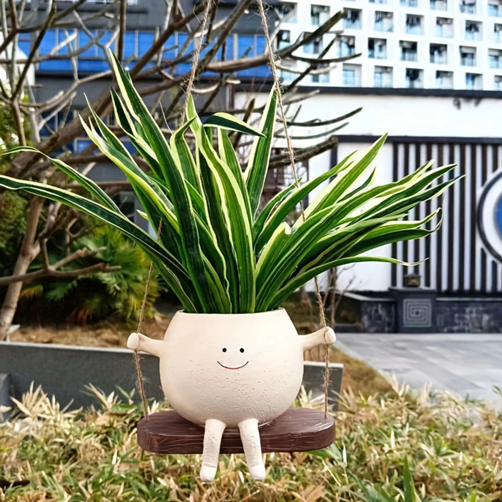 Swing Smile Face Planter Resin Smiling Face Flower Pot Creative Smile Face Flower Container for Indoor Outdoor Plant