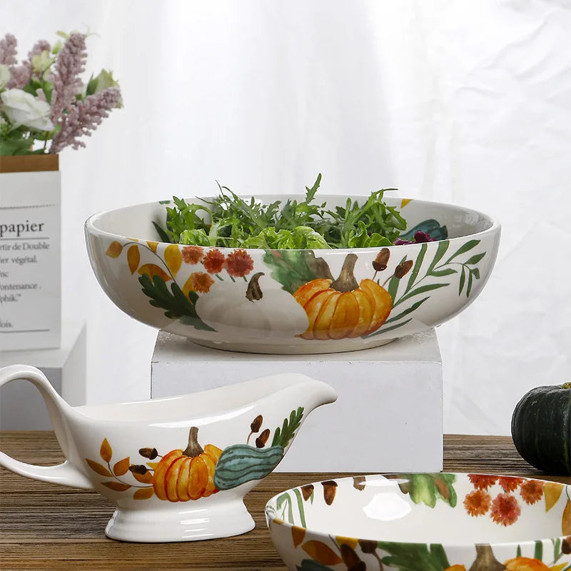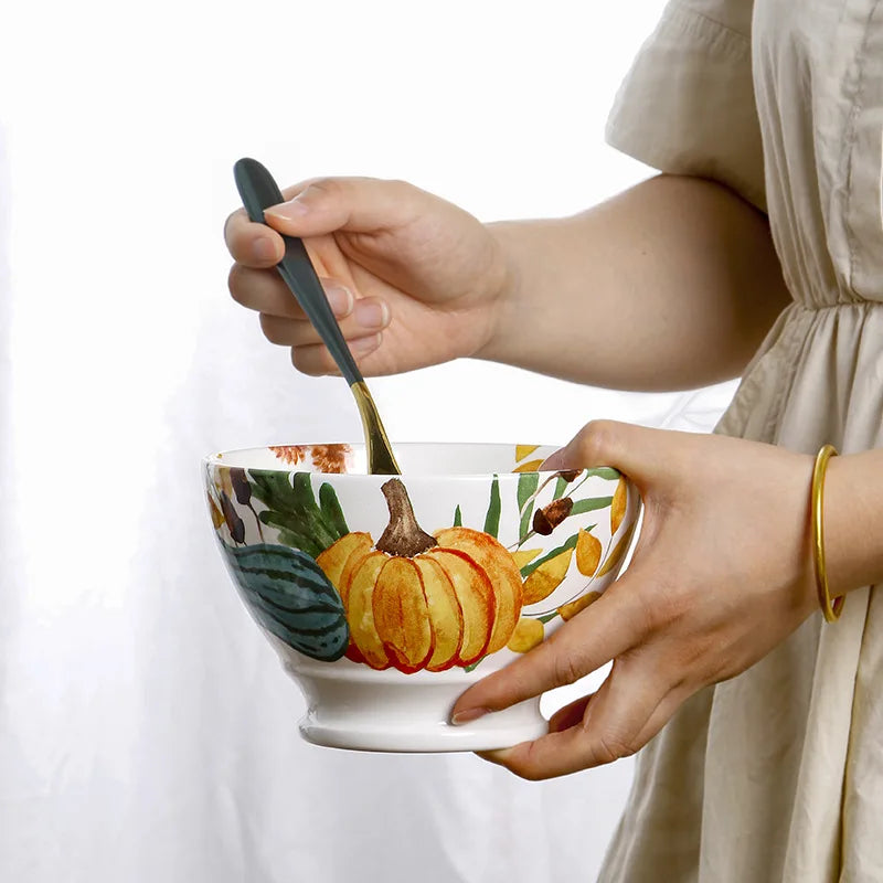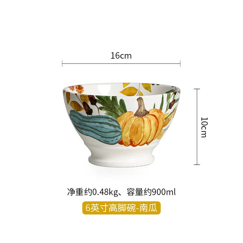 Tall Bowl Round Fruit Salad Bowl American Pastoral Style Personalized Ceramic Dessert Tableware