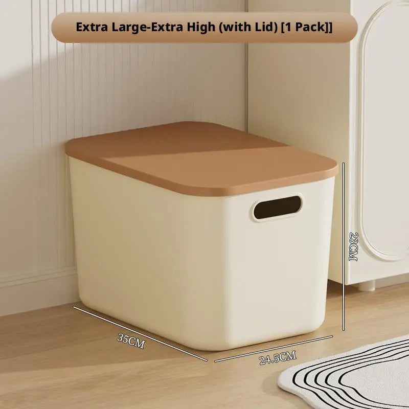 Toy Storage Box with Lid Desktop Plastic Snacks Cosmetics Organizer Basket Dormitory Wardrobe Sundry Pants Clothes Storage Box