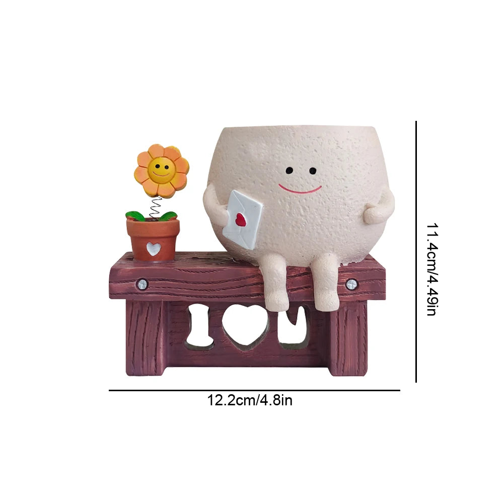 Unique Sit Long Chair Succulent Pots Smile Face Planter Pot Resin Unique Cute Head Flower Planter for Indoor Outdoor Plants