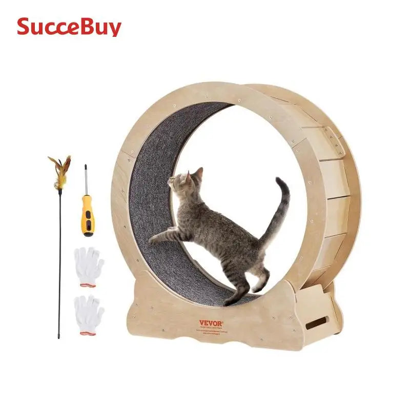 VEVOR Cat Exercise Wheel Natural Wood Silent Running Toy Treadmill Roller Wheel with Detachable Carpet for Most Cats Pet Fitness