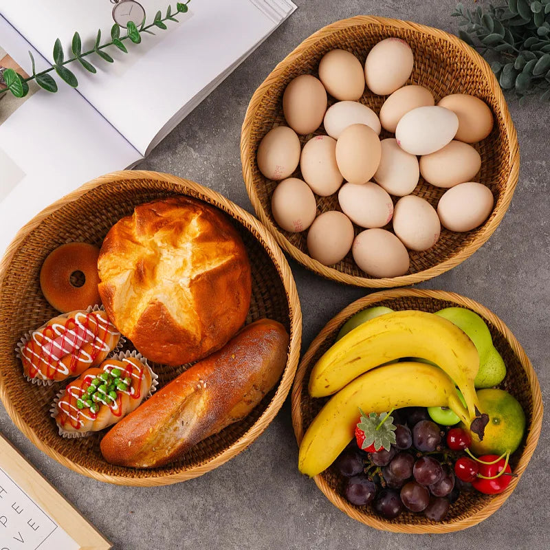Vietnamese Rattan Woven Tray, Colorful Shell Weaved Snack Storage Basket, Dessert & Snack Tray, Fruit, Bread & Tea Serving Tray