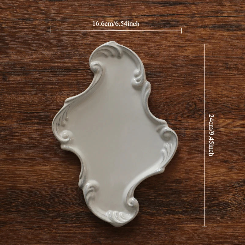 Vintage lace handmade ceramic tray, dining plate, creative bathroom, bedroom jewelry, aromatherapy tray, jewelry dish