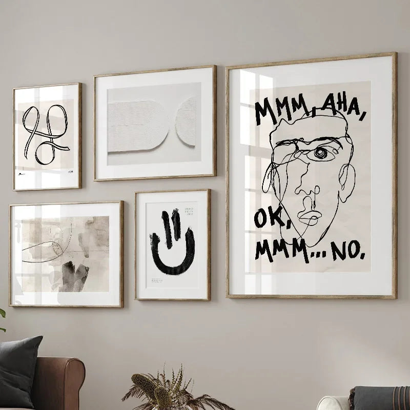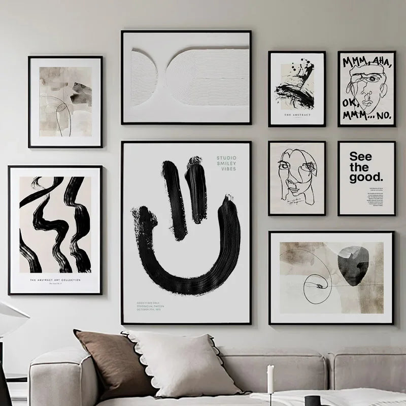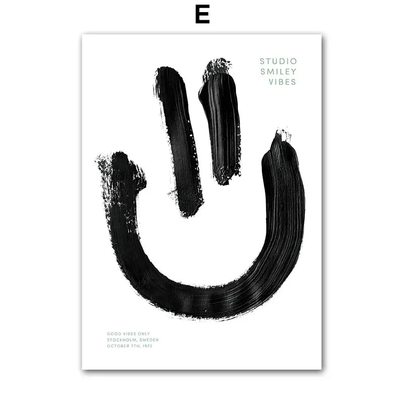 Wall Art Canvas Painting Black Ink Abstract Smile Face Line Drew Nordic Posters Living Room Decoration Salon Print Wall Pictures