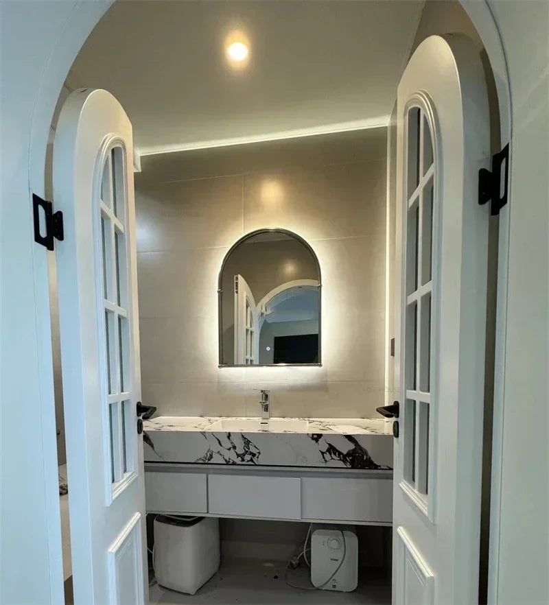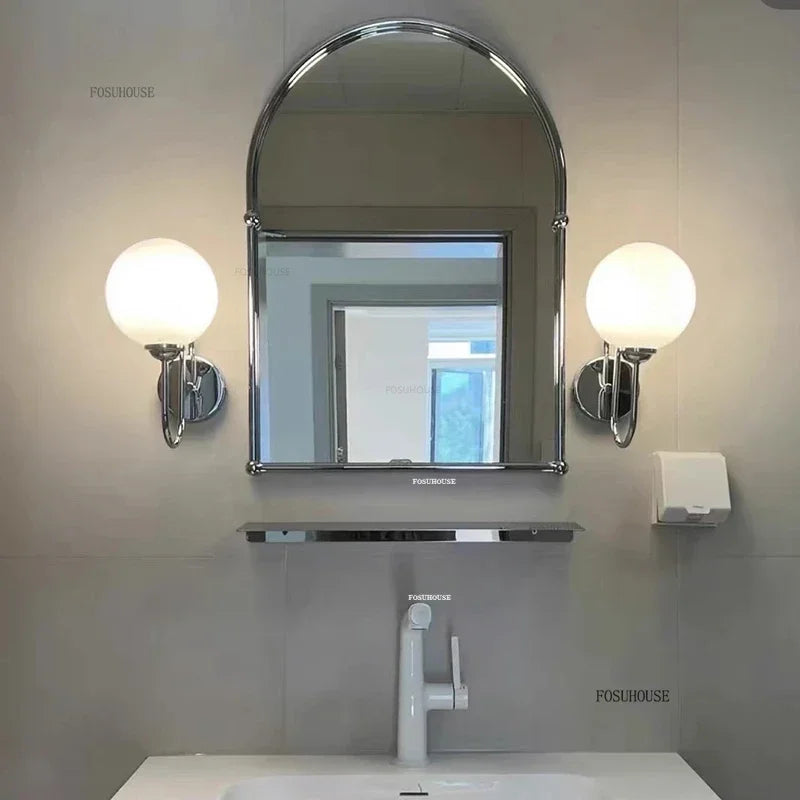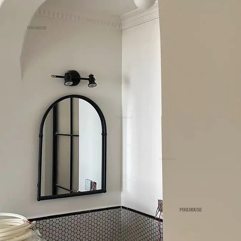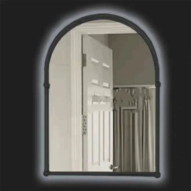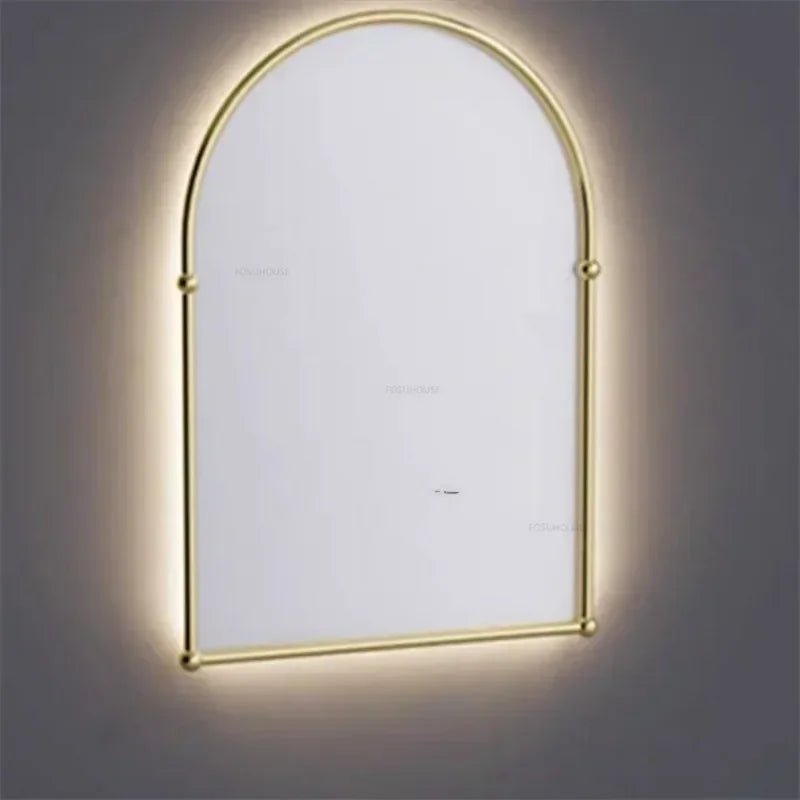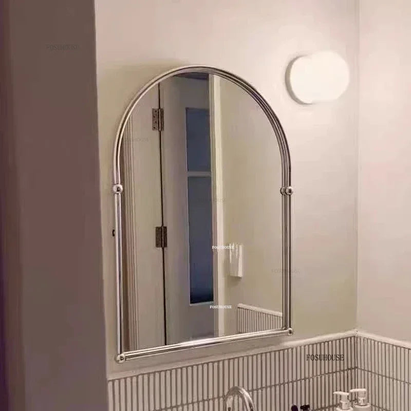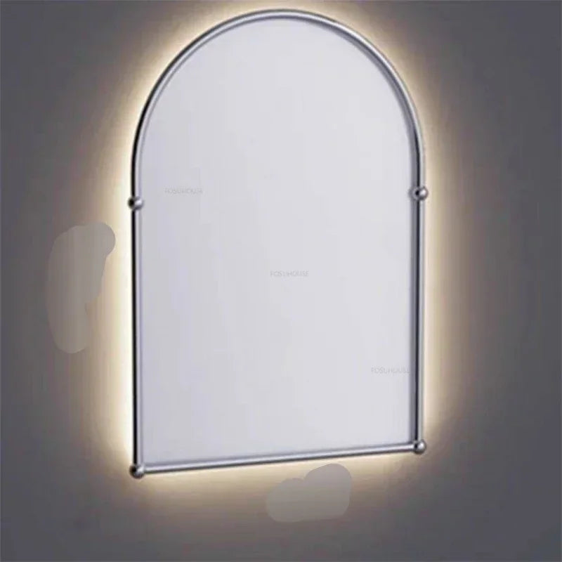 Wall-mounted Bathroom Mirrors Nordic Home Decor Stainless Steel Vanity Mirror with Light Simple Arch-shaped Decorative Mirrors