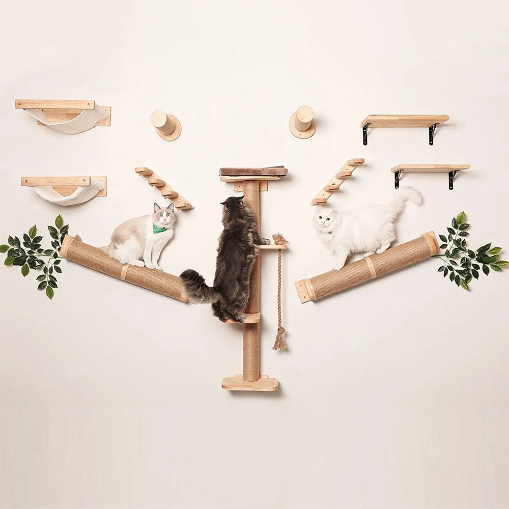 Wall Mounted Cat House Scratching Post Cat Nest Bed Perch Furniture Wood Stairway for Kitten Rest and Cat Grinding Claws