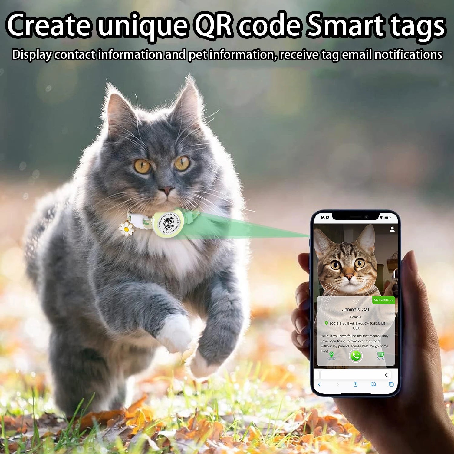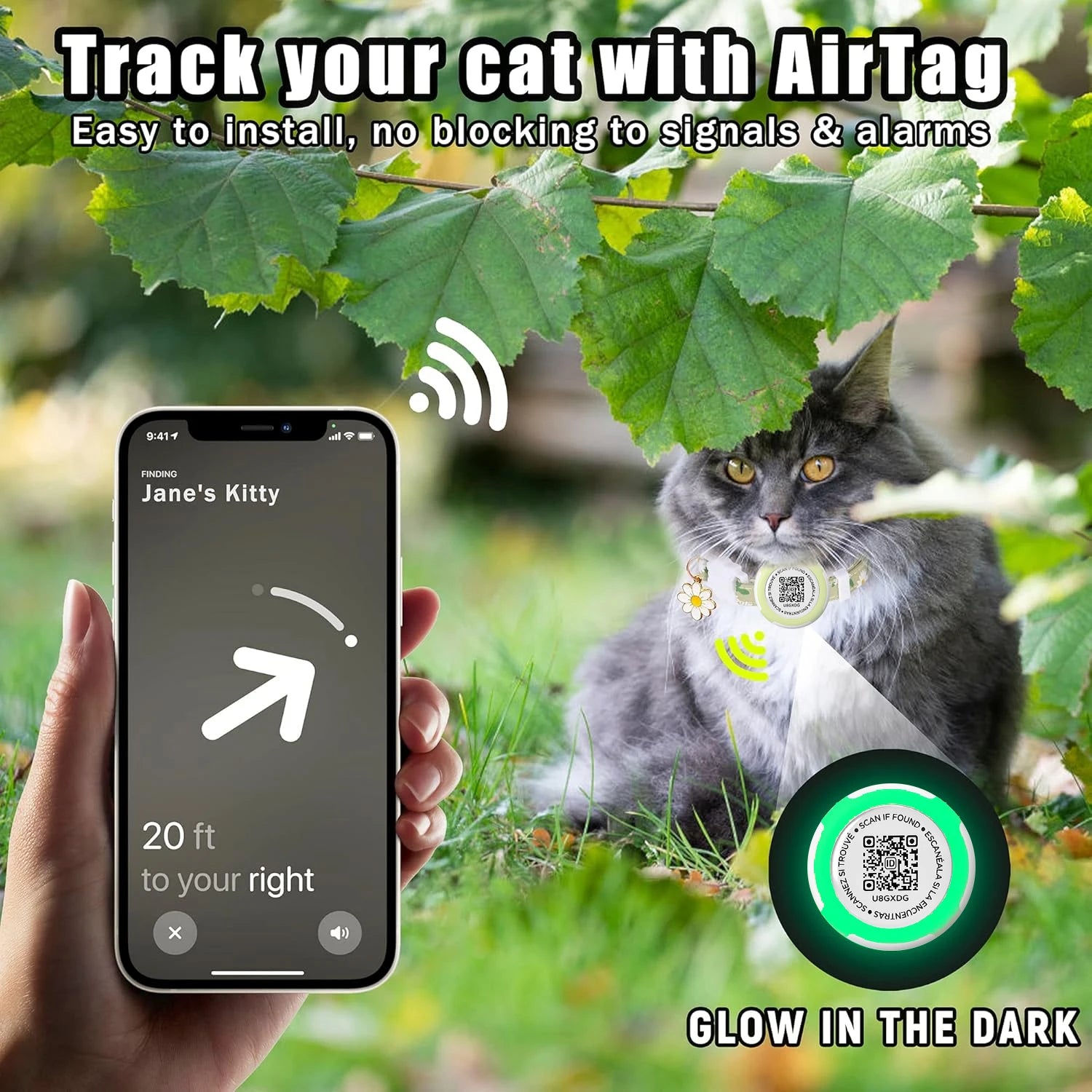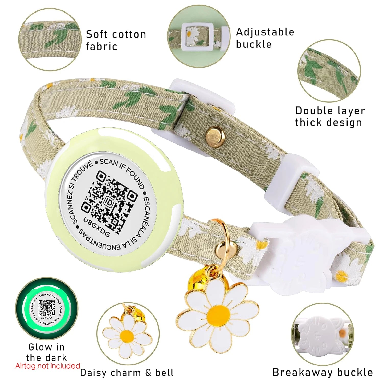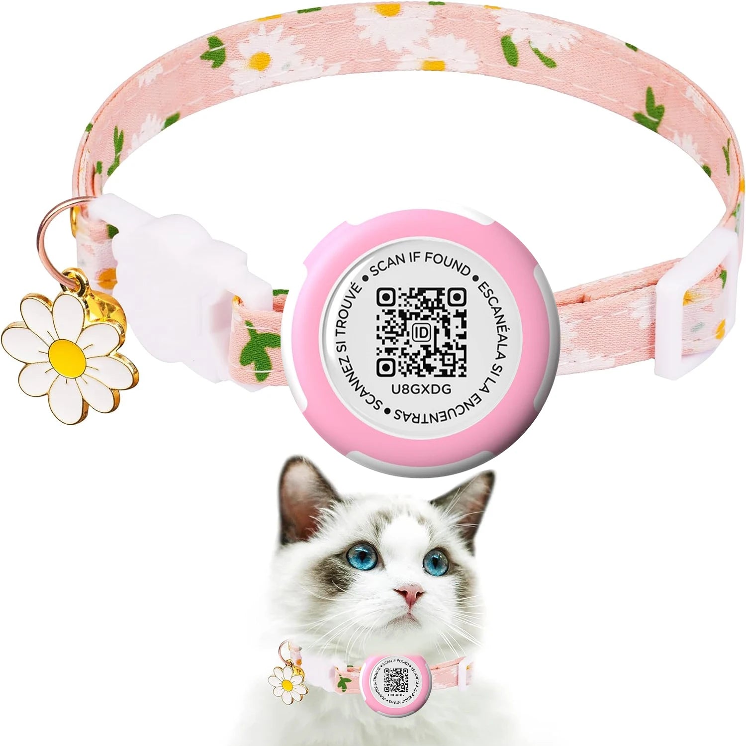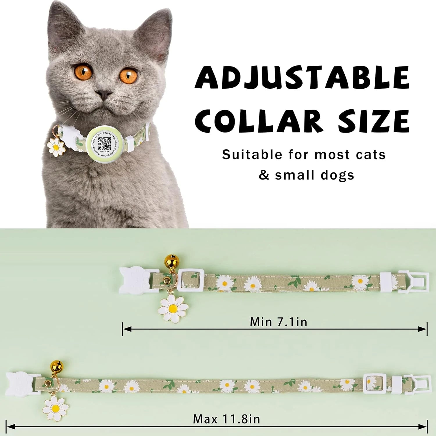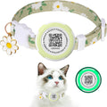 Waterproof Airtag Cat Collar, Kitten Collar Breakaway with Airtag Holder, QR tag & Flower Charm for Girl Cats Boy Cats Small Dog