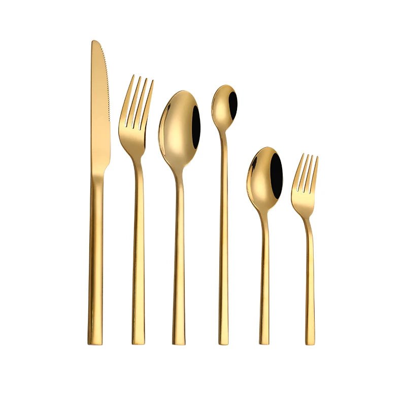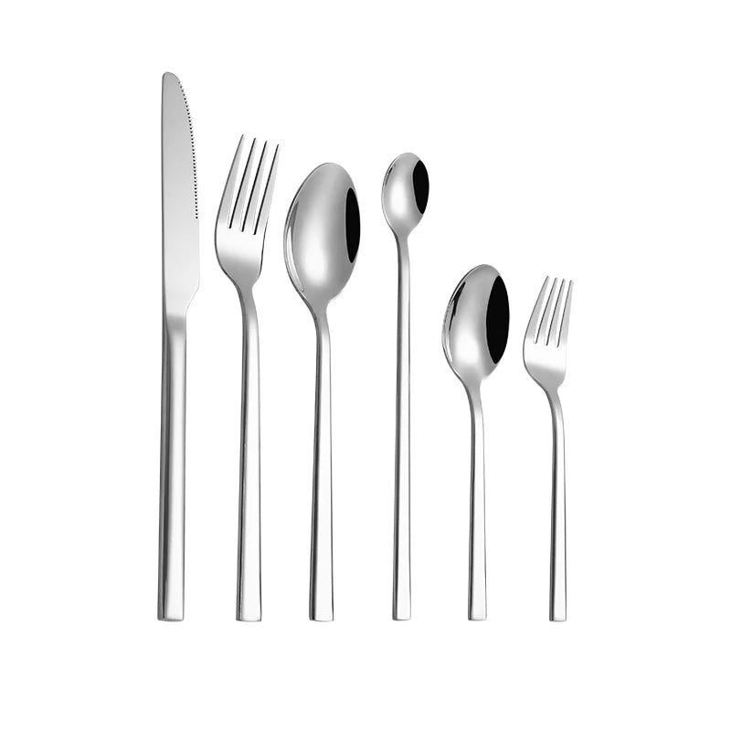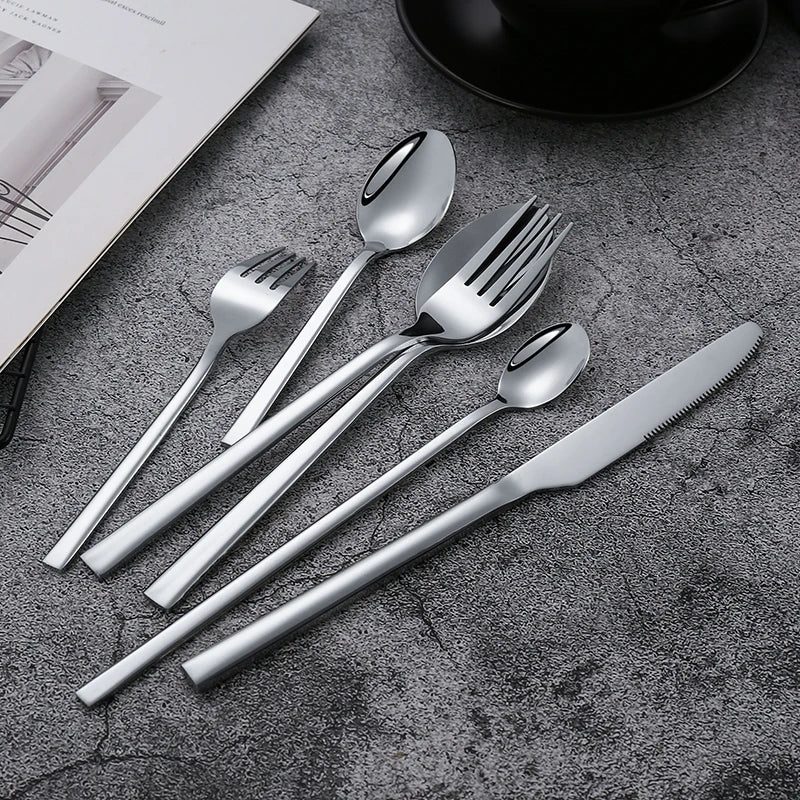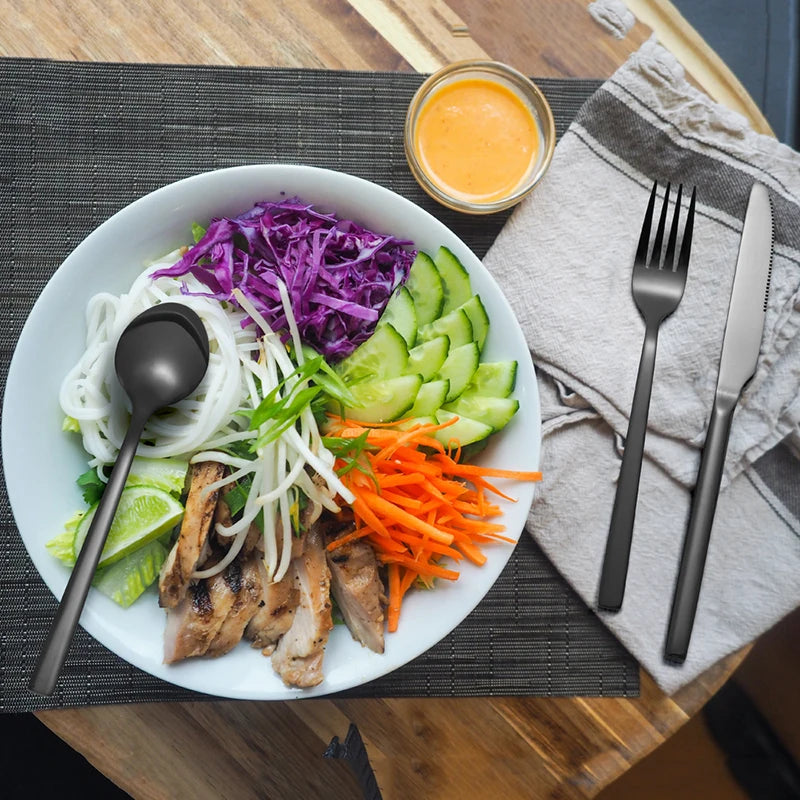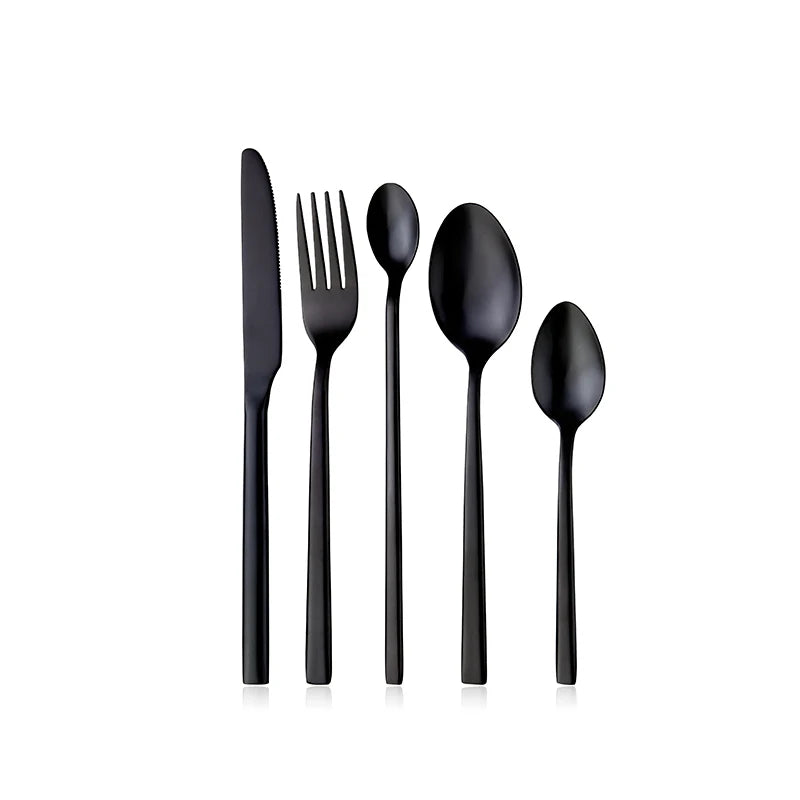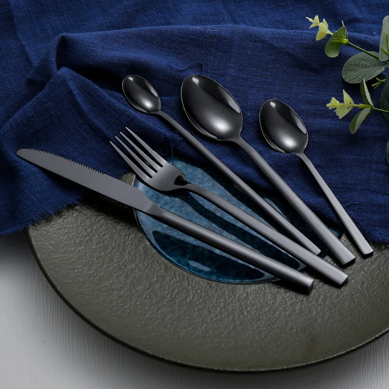 Western Tableware Black Dinnerware Set 6 Pieces Cutlery Set Stainless Steel Knife Fork IceTea Spoon Party Classic Silverware Set