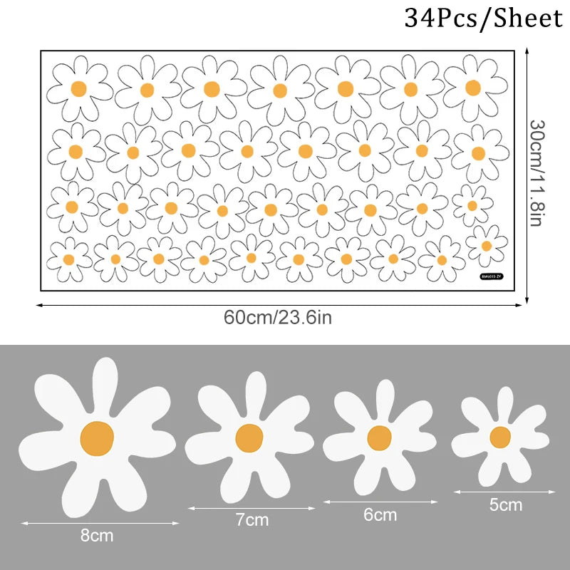 White Daisy Flower Wall Stickers Kids Room Living Room DIY Art Decas Baby Nursery Home Decoration PVC Window Sticker