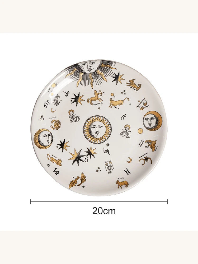 White Face Sun Hanging Plate Ceramic Round Wall Decoration European Art Wall Decoration 10 Inches Craft Fruit Dessert Plate New